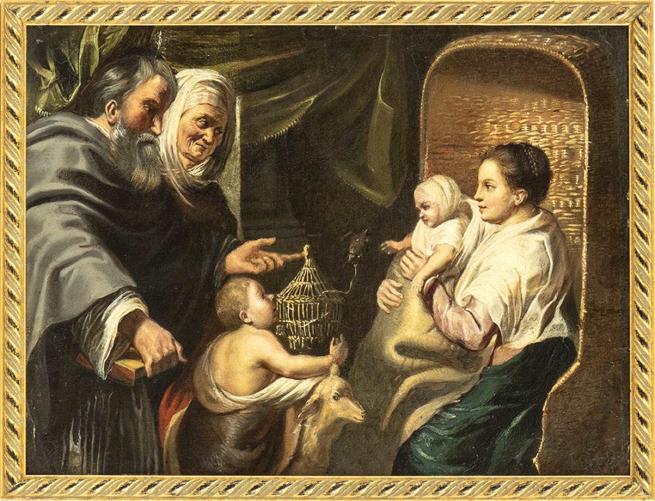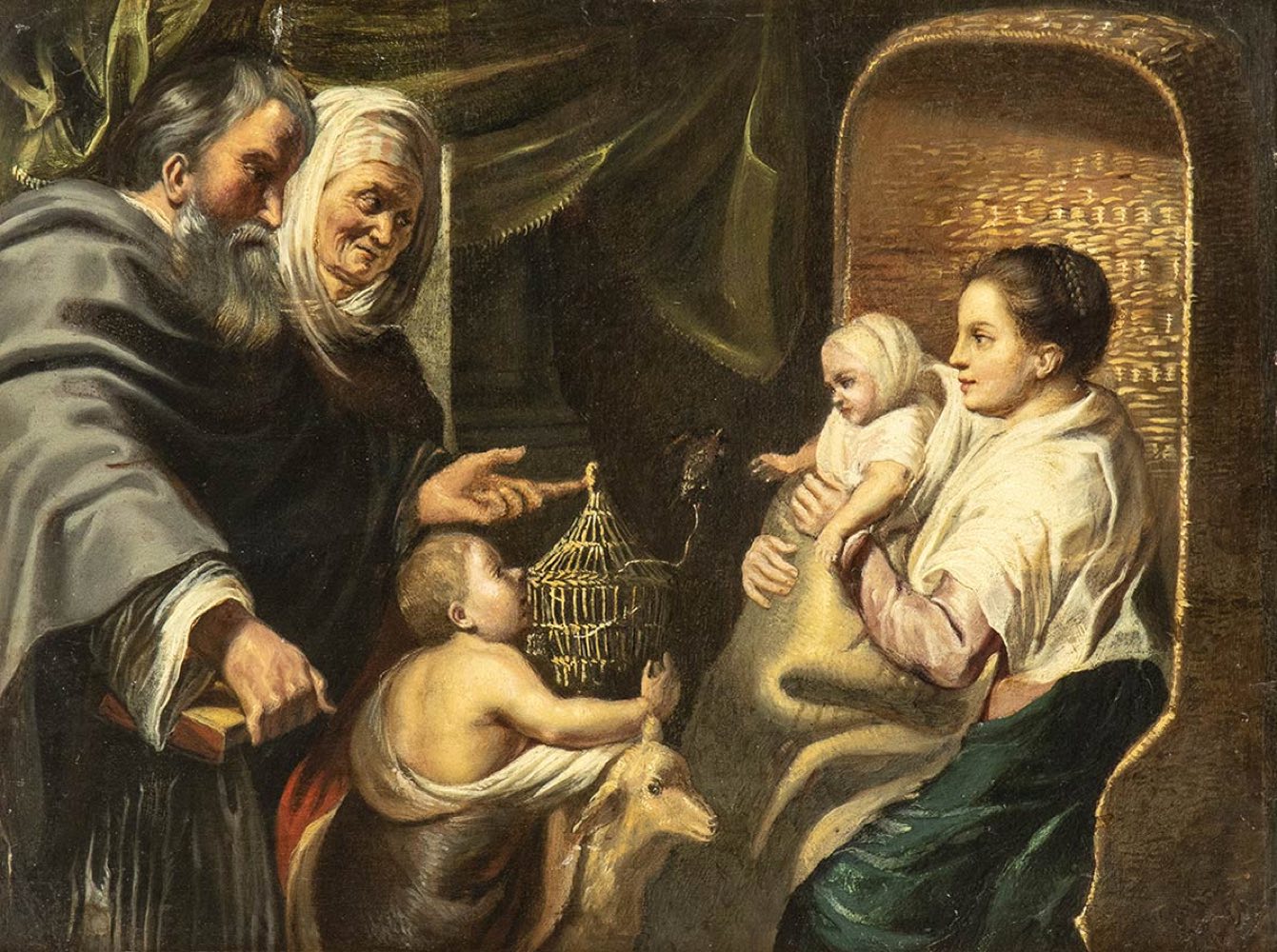 Questo bel dipinto su rame si presenta chiaramente in relazione con un celebre prototipo di Jacob Jordaens, di cui ricalca l'impaginazione, sia pur con notevoli varianti. Il prototipo del grande artista fiammingo è conservato presso il North Carolina Museum of Art. Di quest'ultimo, a testimonianza della felice e fortunata soluzione compositiva, esistono diverse varianti autografe conservate al Metropolitan Museum di New York, all'Ermitage di San Pietroburgo e all'Alte Pinakothek di Monaco di Baviera.