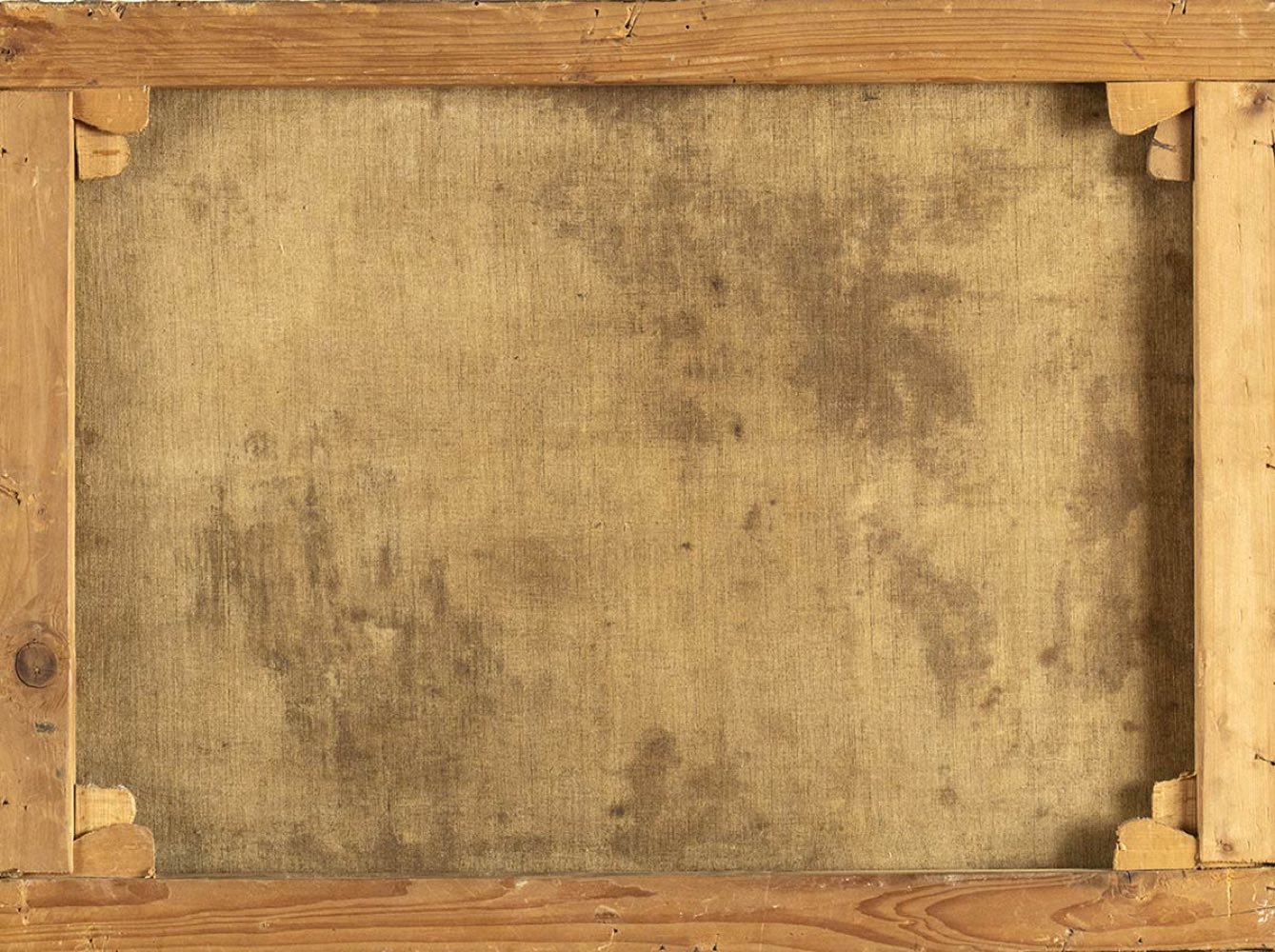 La tela reca iscrizione parzialmente leggibile in basso al centro sulla pietra tra le figure: "VIANO F. / 156."