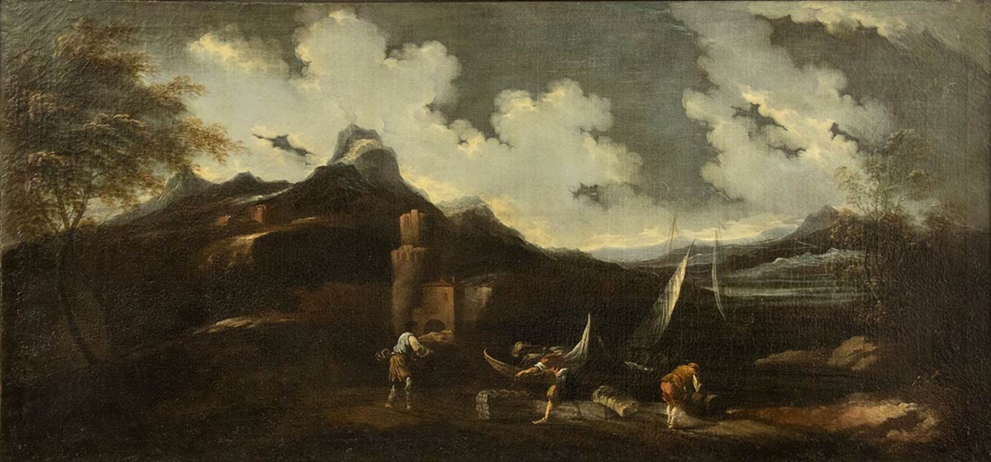 Questo bel paesaggio può essere avvicinato alla produzione di Crescenzio Onofri, eccellente specialista allievo di Gaspar Dughet che fu attivissimo per famiglie del calibro dei Doria Pamphili, dei Colonna, dei Pallavicini. Si segnalano qui, a titolo di confronto con la nostra tela, i due Paesaggi della Pinacoteca Capitolina a Roma, o il grande Paesaggio con Marina, a tempera, di Palazzo Doria Pamphili.
