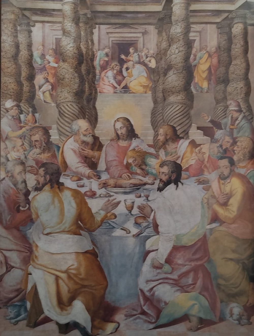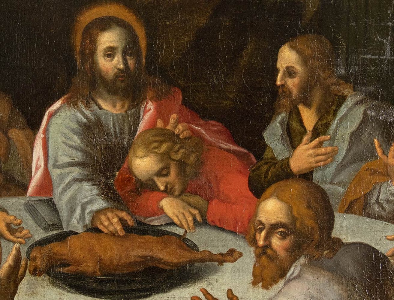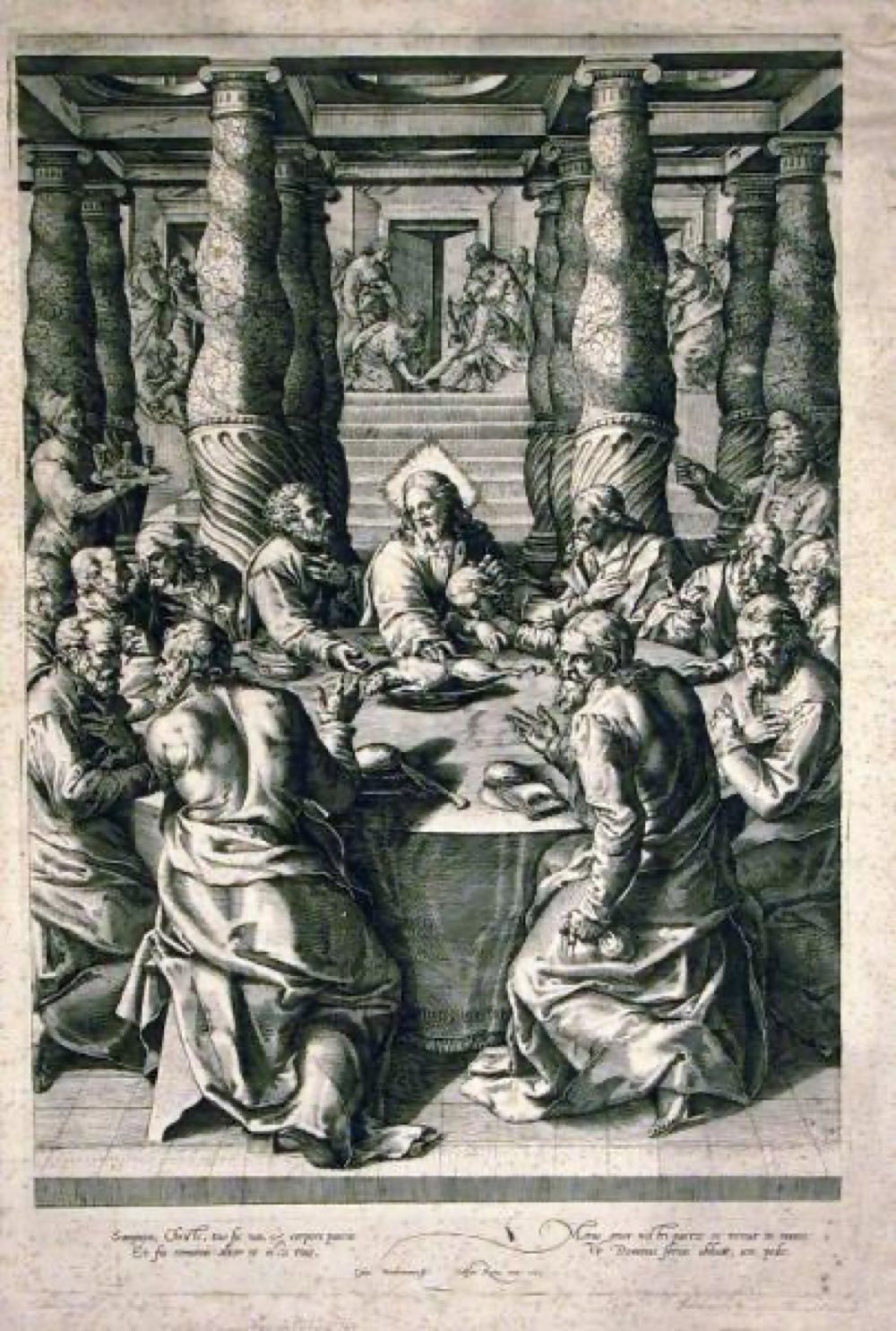 Questa tela inedita costituisce una rara e affascinante testimonianza deI tardo manierismo romano nella sua declinazione più estrosamente antinaturalista. Il preponderante modello di Michelangelo, di cui forse si può riconoscere il ritratto nell'apostolo collocato sulla sinistra a fianco del servo col turbante, è temperato da influssi nordici e tintoretteschi. I colori sono squillanti e contrastati, con abbinamenti cromatici arditi, come il verde e rosa dell'apostolo in primo piano di spalle. Il dipinto è strettamente connesso con l'afresco realizzato nel 1569 da Livio Agresti nell'Oratorio del Gonfalone a Roma. Da questo trasse ispirazione l'incisione di Cornelis Cort realizzata nel 1578, e ulteriormente rielaborata dallo stesso Cort, modificando lo sfondo, in una seconda stampa di qualche anno più tarda.