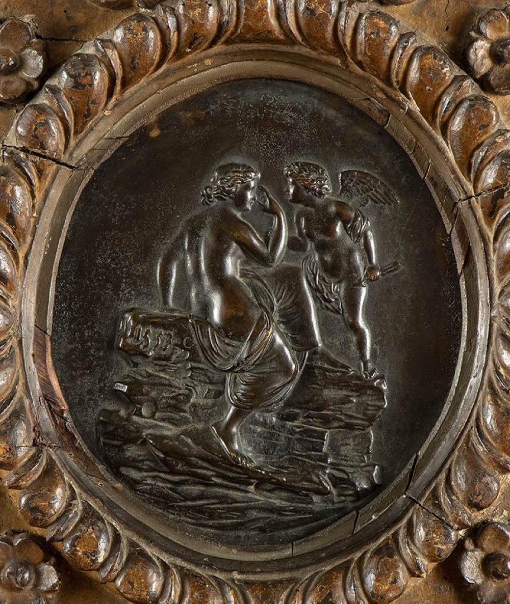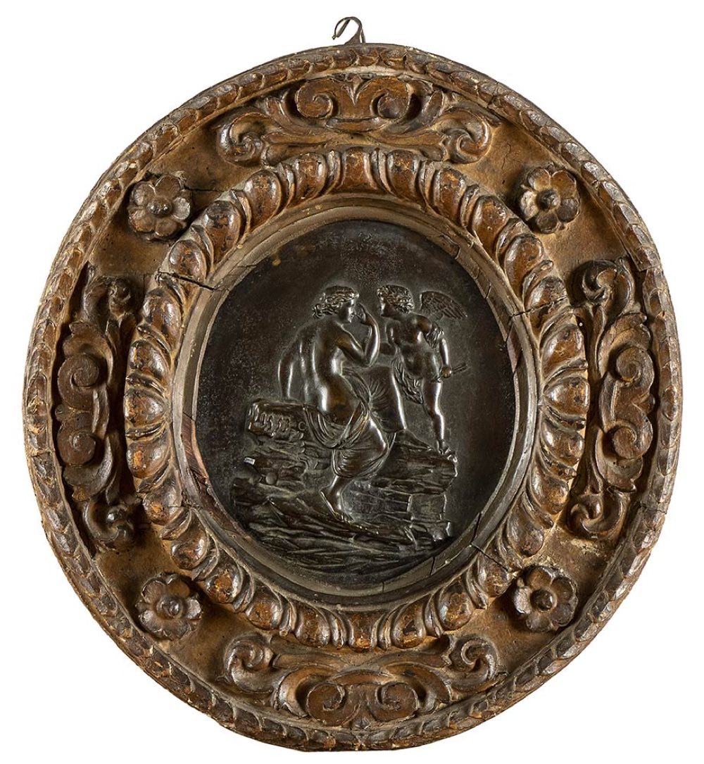 La dinamica struttura serpentinata e il modellato plastico rimandano alla scultura manierista toscana tra Cellini e Gianbologna. Chiara vi è anche l'influenza delle composizioni del Parmigianino tradotte a stampa da Ugo da Carpi e dalla sua cerchia. L'autore della placca può essere individuato tra gli artisti fiamminghi attivi tra Firenze e Roma nella cerchia di Benvenuto Cellini. D'accordo con lo studio del dottor Francesco Rossi il riferimento più accreditato appare quello alla bottega di Willem van Tetrode che soggiornò in Italia in tutto l'arco del sesto decennio del Cinquecento