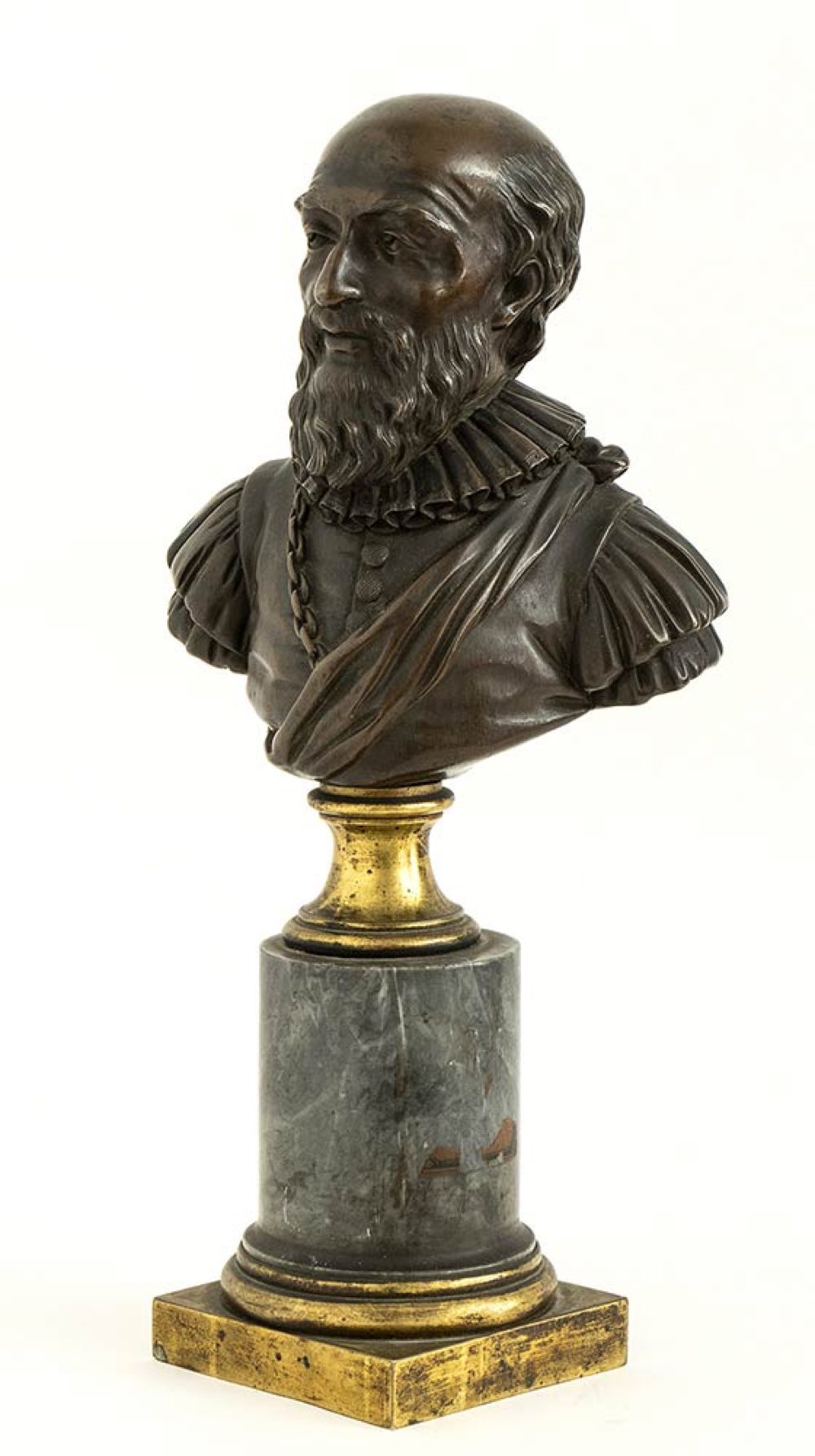 Busto di gentiluomo con barba, gorgiera e catena d'oro imperiale al collo