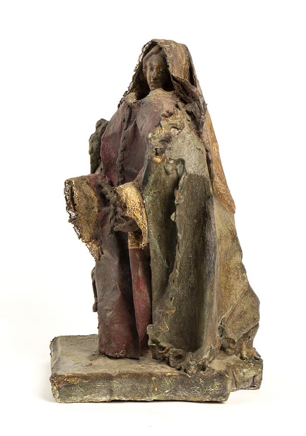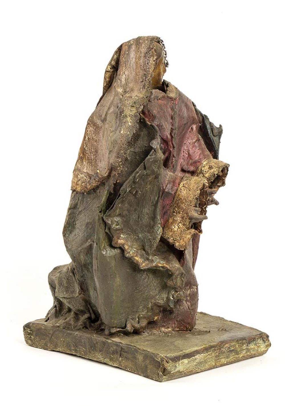 Cartapesta modellata e dipinta e stoffa, cm. 30x14x18