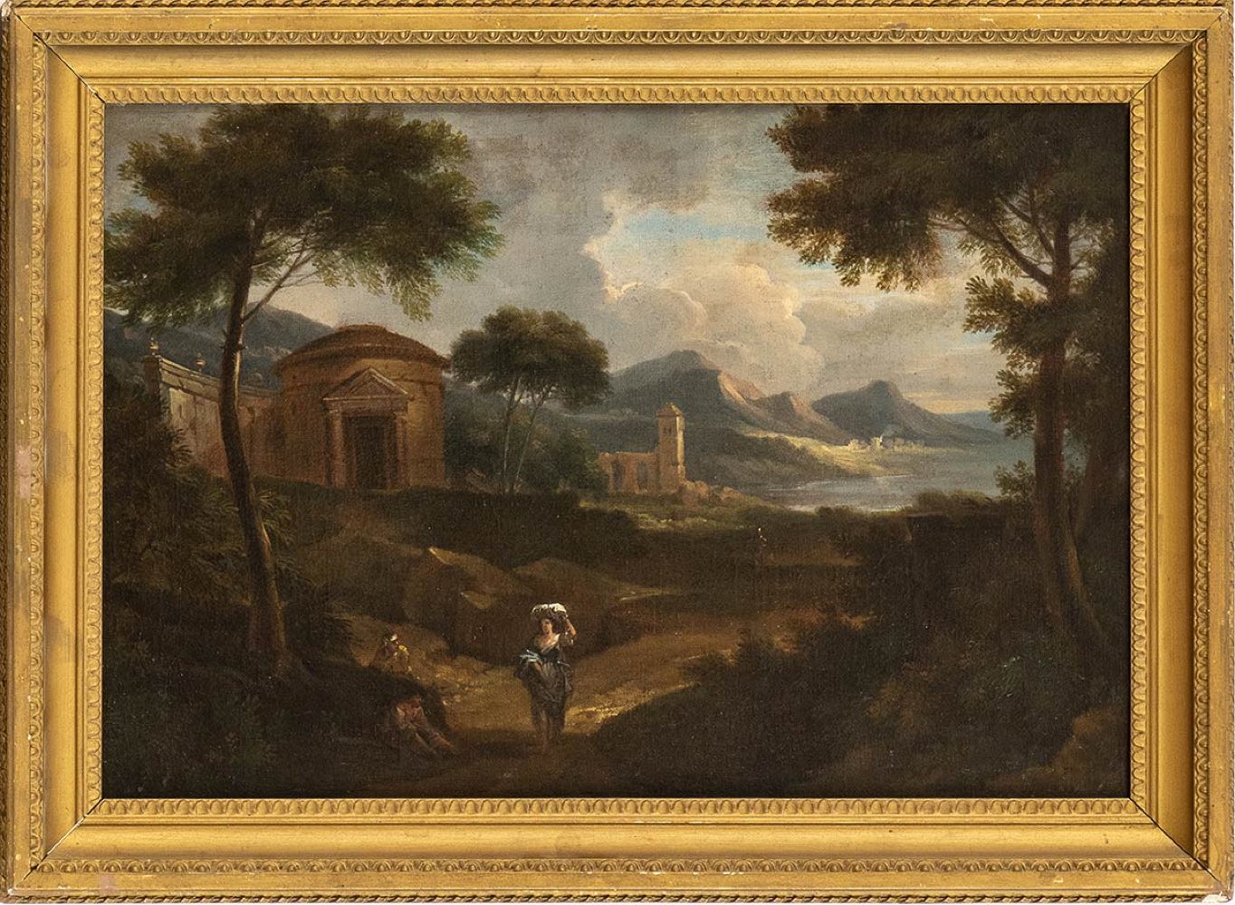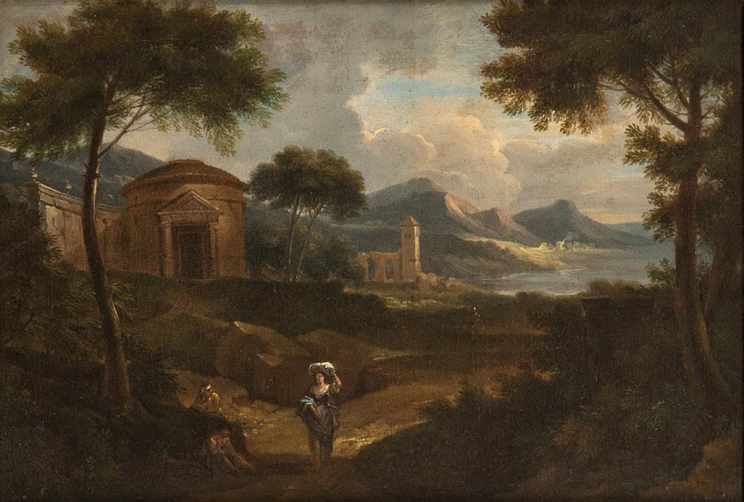 Paesaggio con lavandaia e tempietto circolare sullo sfondo