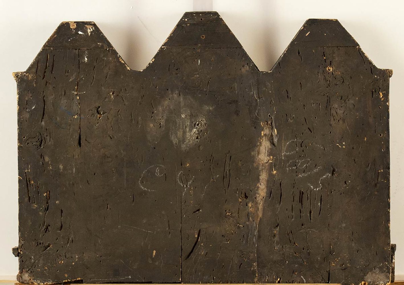 Il dipinto presenta varie tracce di pentimenti e un craquelure fine e omogeneamente diffuso su tutta la superfice della tavola.