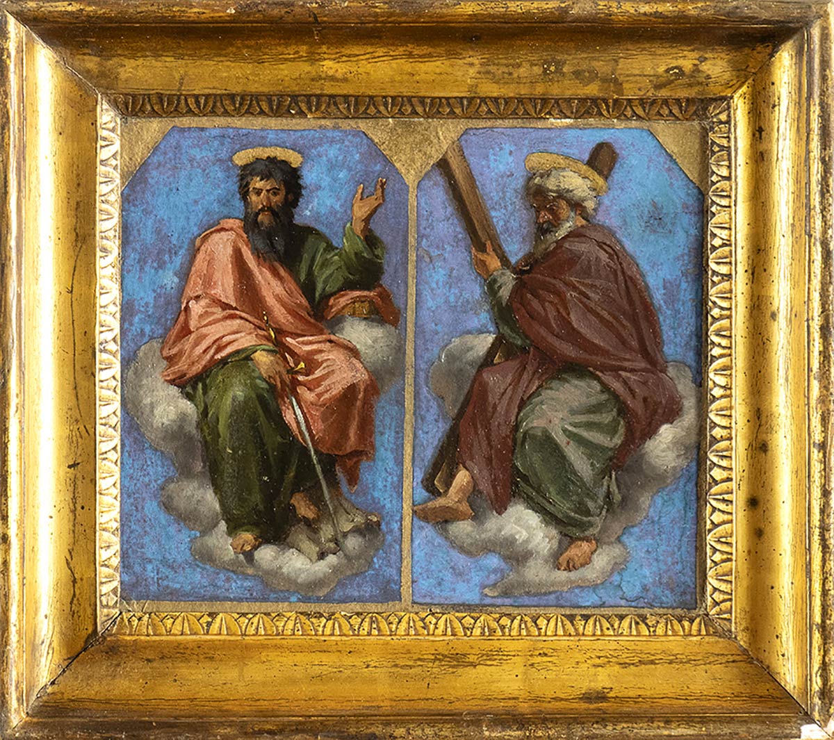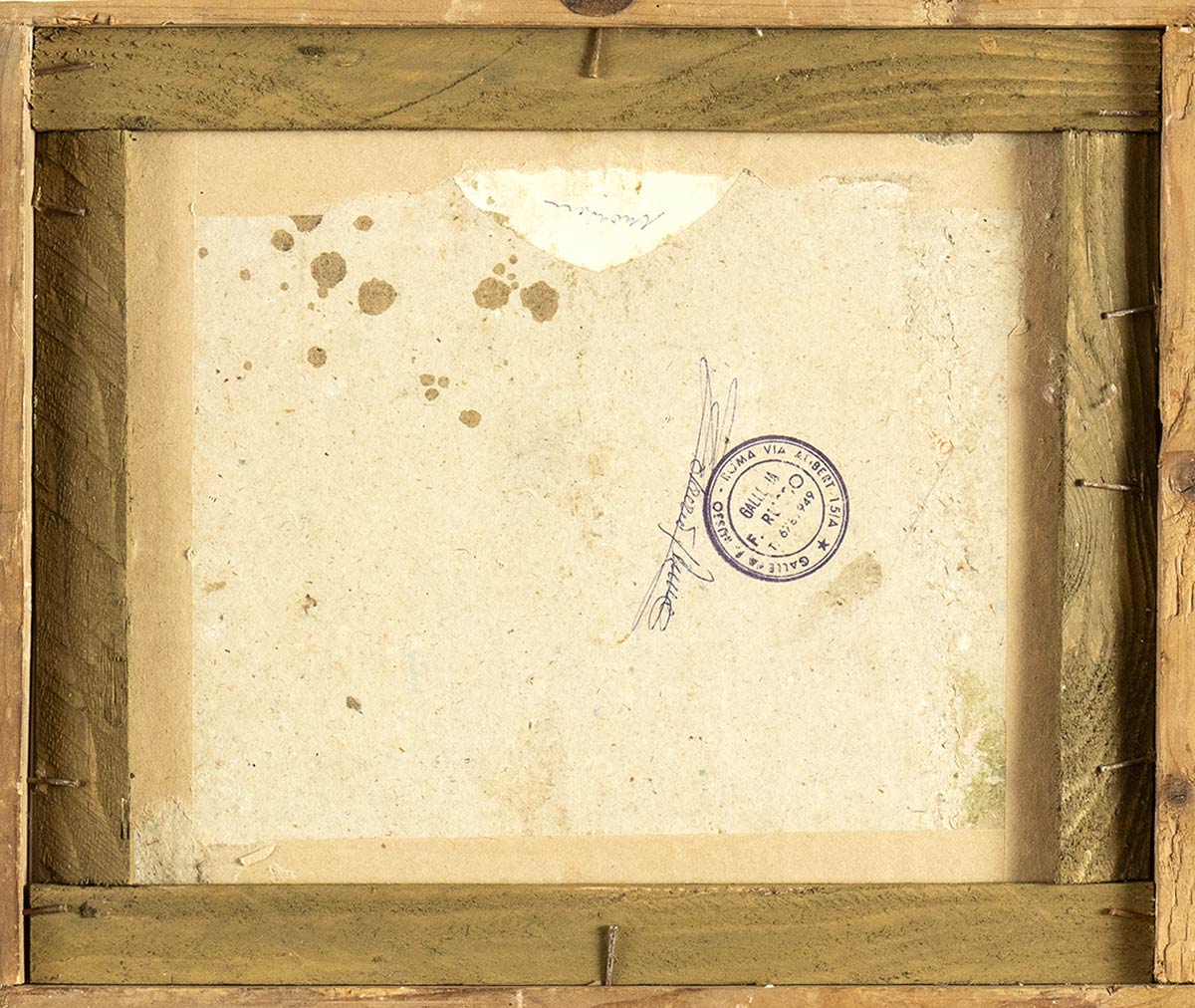 La tavola riporta a retro il timbro della galleria: "F. RUSSO, ROMA, VIA ALIBERT 15A".