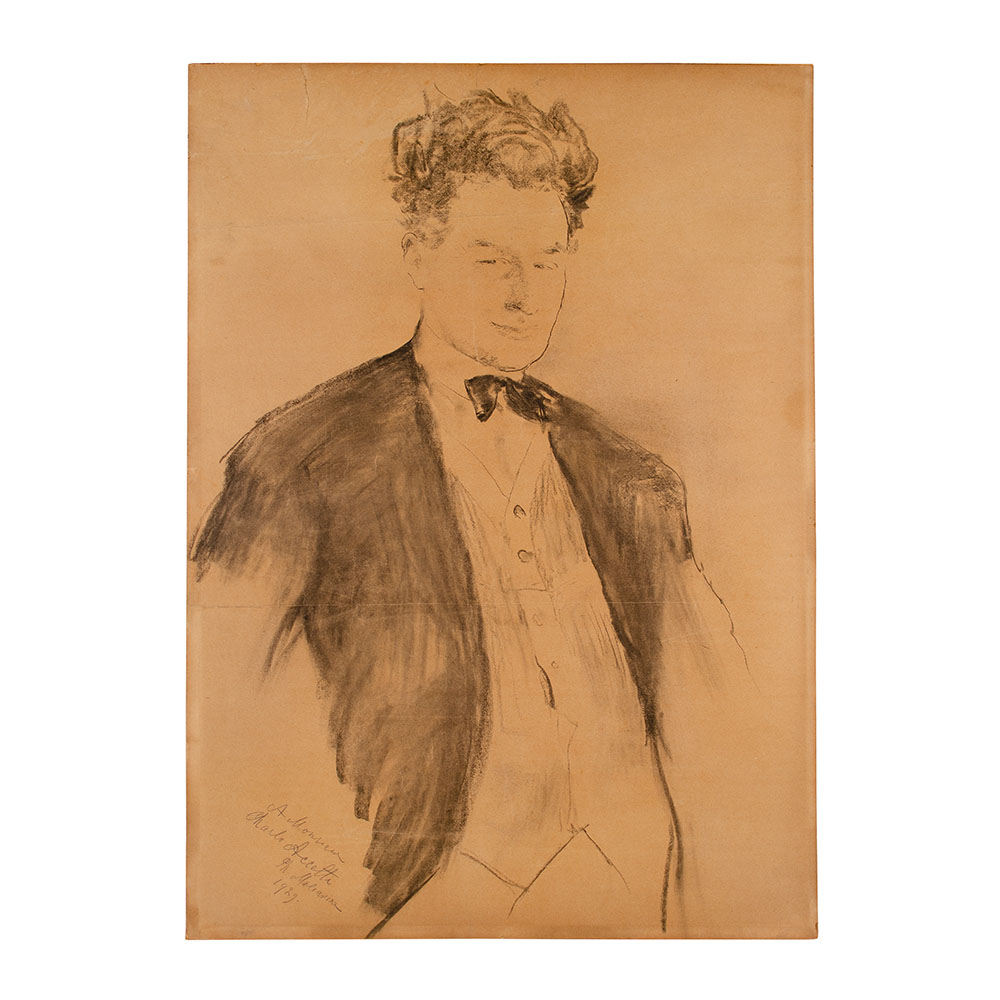 carboncino su carta applicata su cartone, cm 90,5x64,5. Firmato, datato e dedicato in basso a sinistra: A Monsieur / Carlo Accetti / Ph. Maliavine / 1929