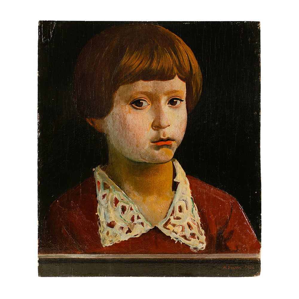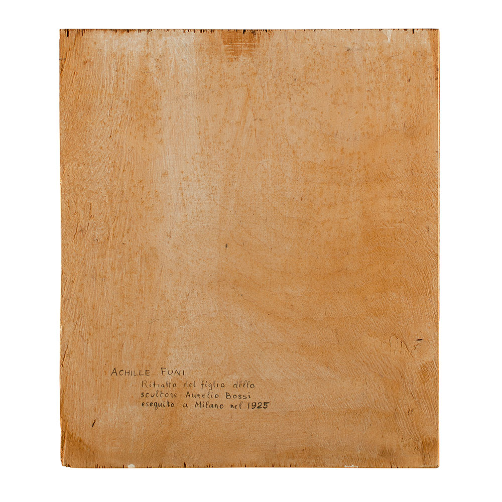 Inscritto al verso: Achille Funi / Ritratto del figlio dello / scultore Aurelio Bossi / eseguito a Milano nel 1925