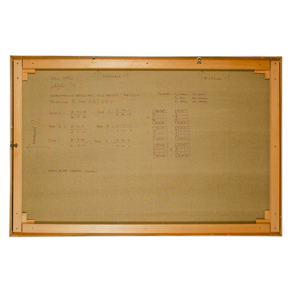 Firmato, datato, e titolato al verso: Paolo Minoli 74 Compenetrazioni reticolari.