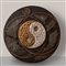 Collage, olio e tecnica mista su tela applicata a tavola elettrificata, al retro firma, data e titolo ‘A. Raccagni/1978-'94/Il .../lo Yin e lo Yang’, diametro cm 130