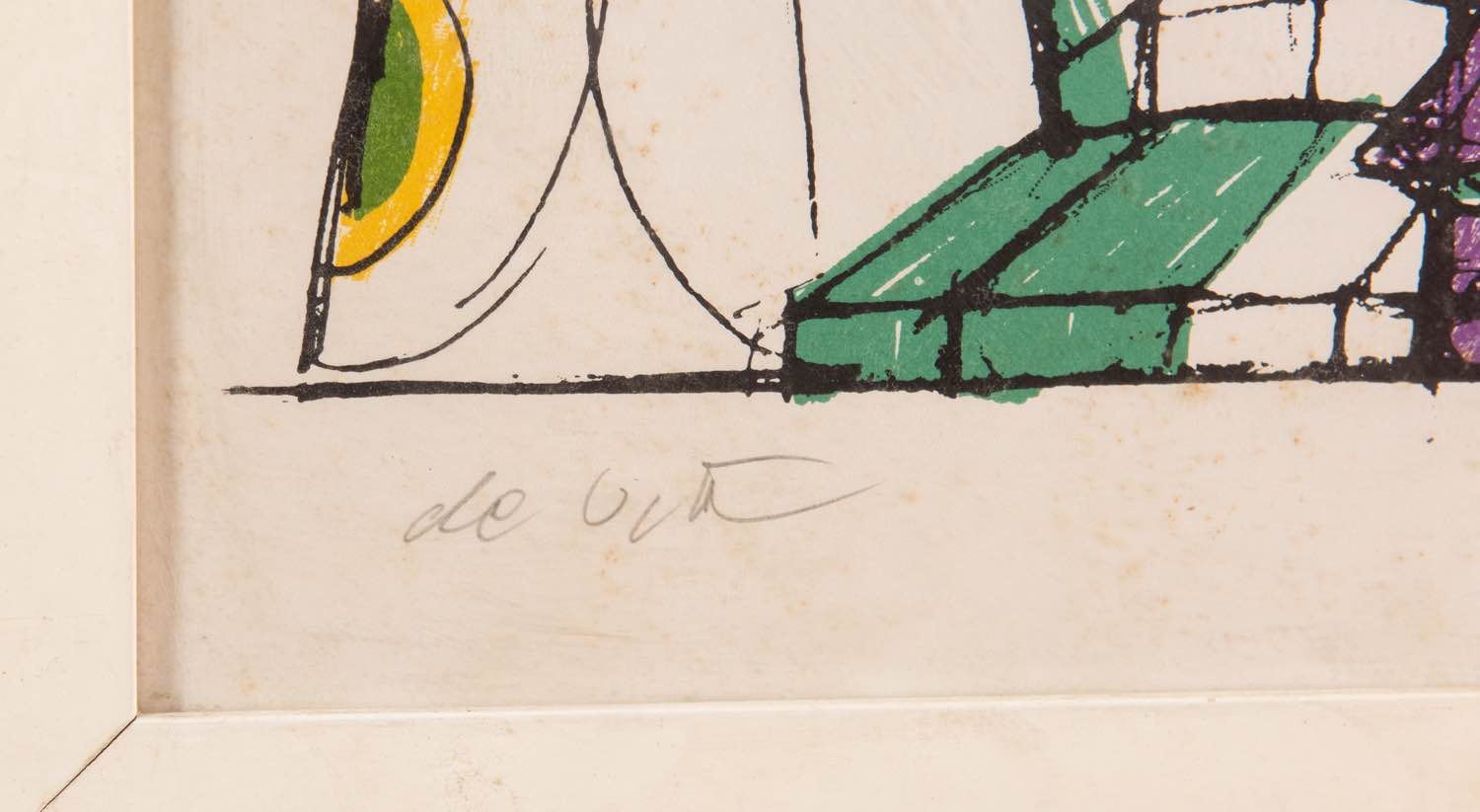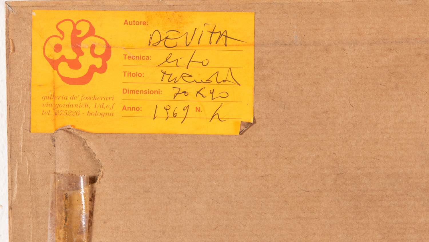 Litografia a colori su carta firmata in basso a sinistra De Vita e esemplare H.C., H cm 79x90 Al retro reca etichetta Galleria De Foscherari - Bologna.