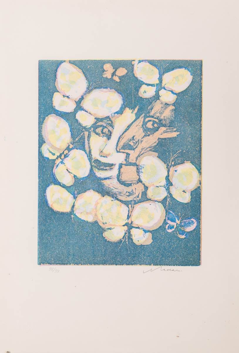 Litografia a colori su carta firmata in basso a destra Maccari, numero di tiratura in basso a sinistra 95/99, Foglio H cm 50x35