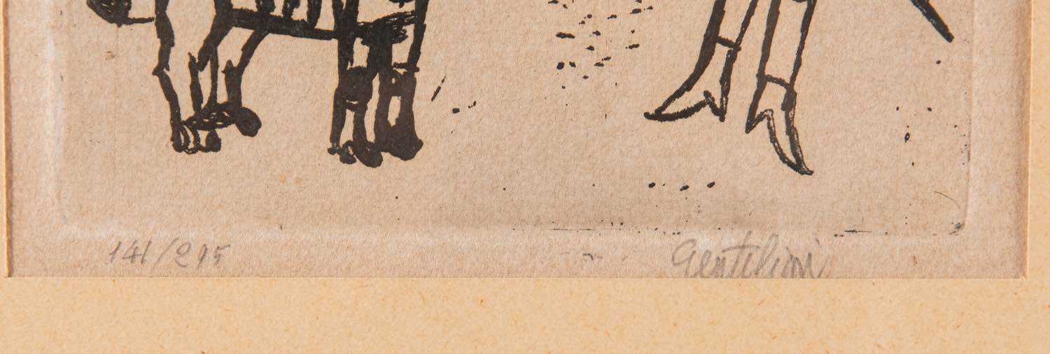 Incisione su carta firmata in basso a destra Gentilini, numero di tiratura in basso a sinistra 191/295, Lastra H cm 19x11.5