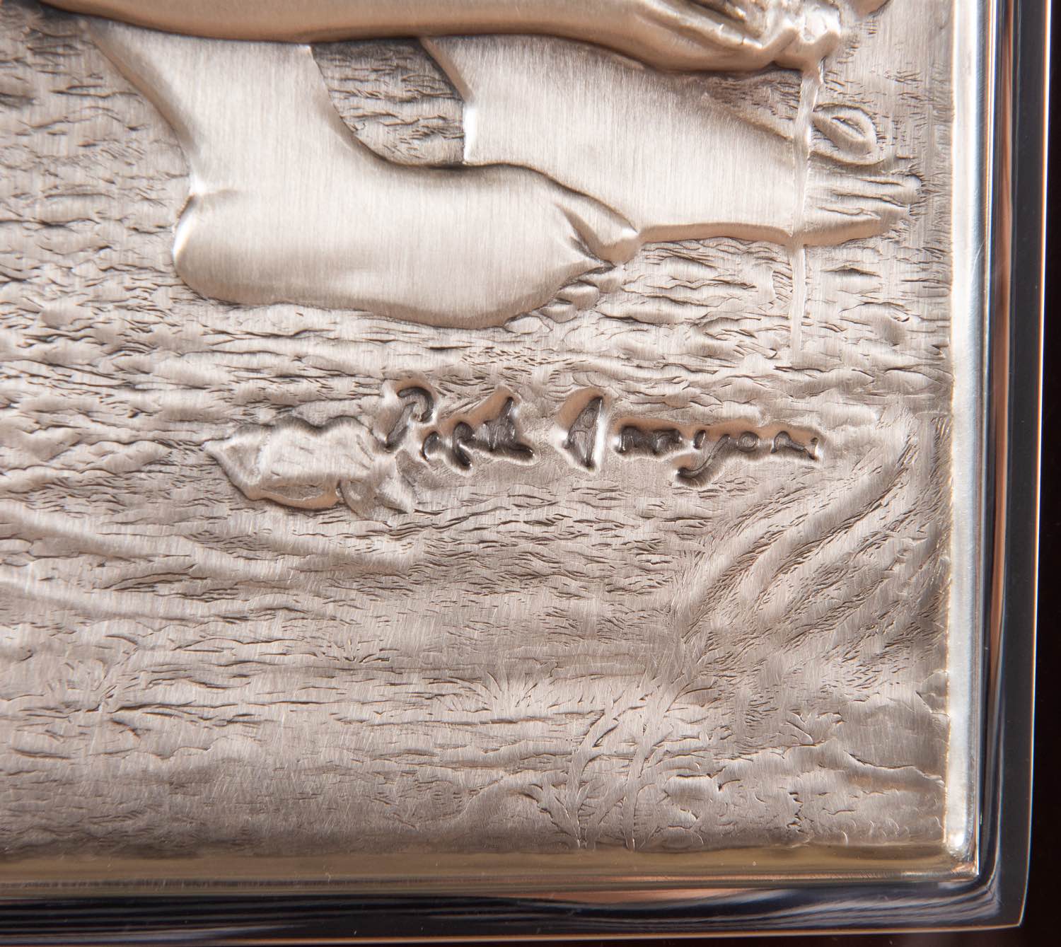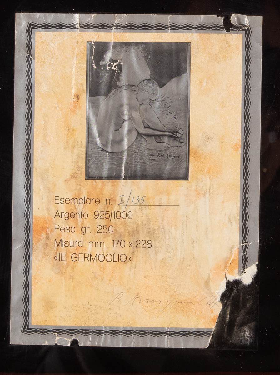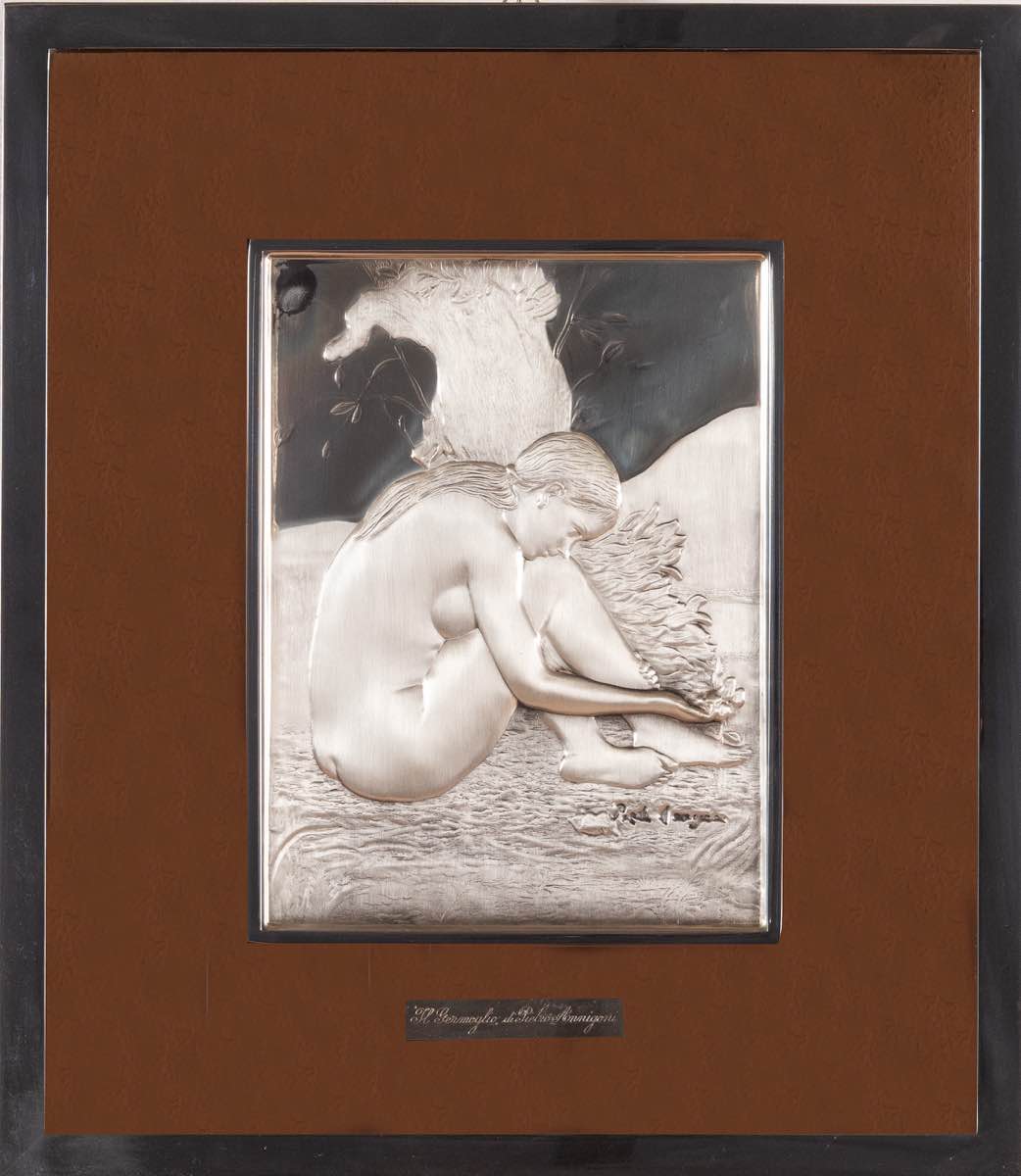Bassorilievo su lastra d’argento 925/1000, firmato in basso a destra Pietro Annigoni, al retro esemplare I/135 e firma Annigoni, H mm 228x170