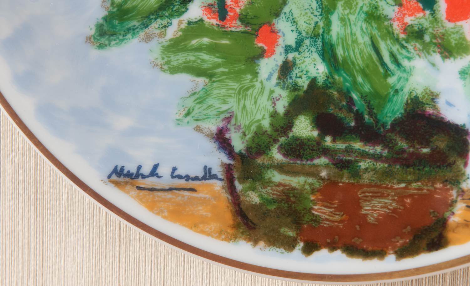 Piatto in ceramica entro teca, esemplare XXXII/C, al retro reca marchio GDA Limoges France, titolo e numero di tiratura, diametro cm 21 Opera accompagnata da certificato di autenticità.