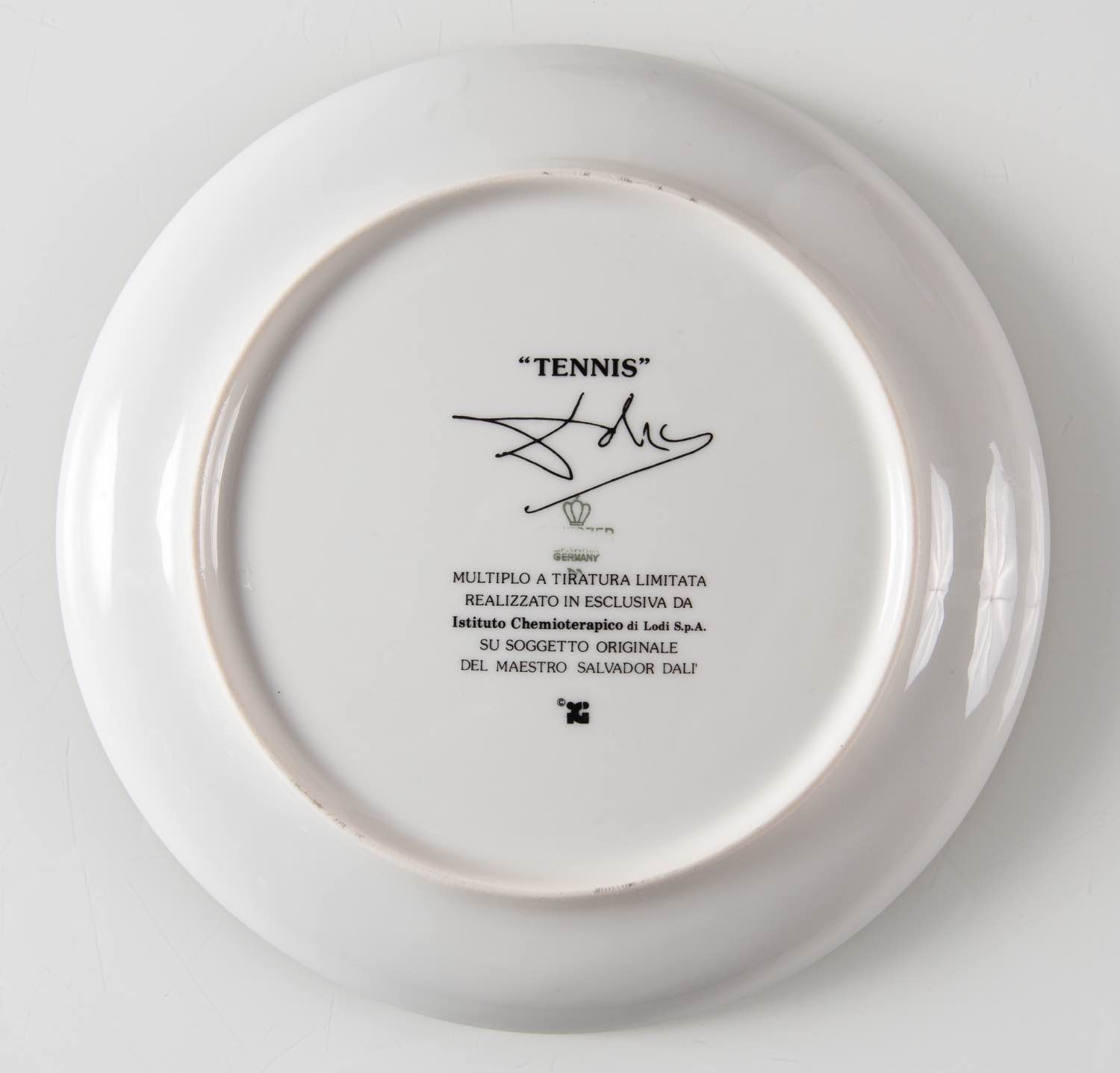 Piatto in porcellana tedesca, multiplo a tiratura limitata realizzato in esclusiva da Istituto Chemioterapico di Lodi, diametro cm 26 (difetti)