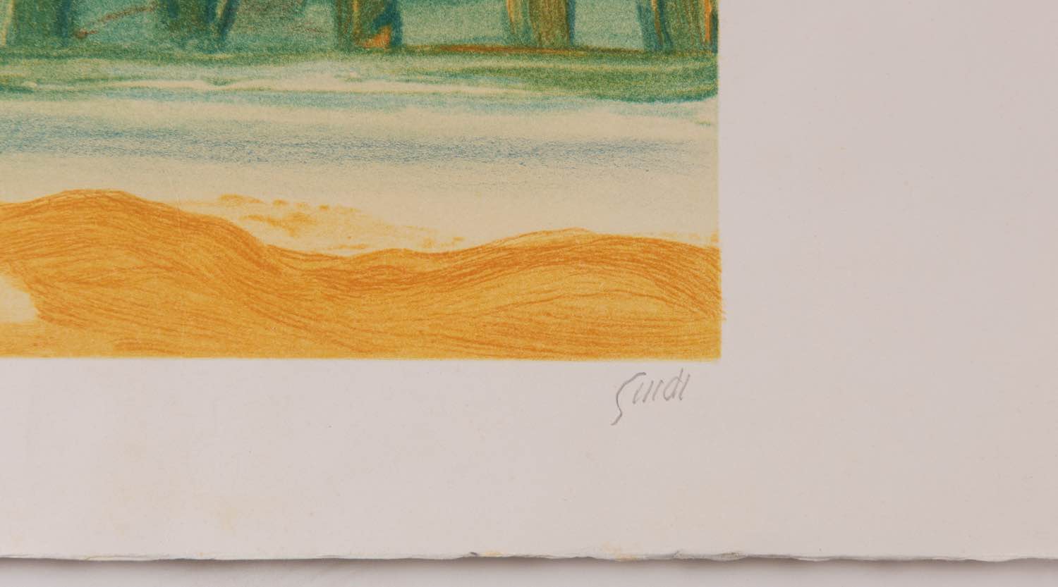 Litografia a colori su carta firmata in basso a destra Guidi, numero di tiratura in basso a sinistra 77/100, Foglio H cm 50x70 - Lastra H cm 41x52