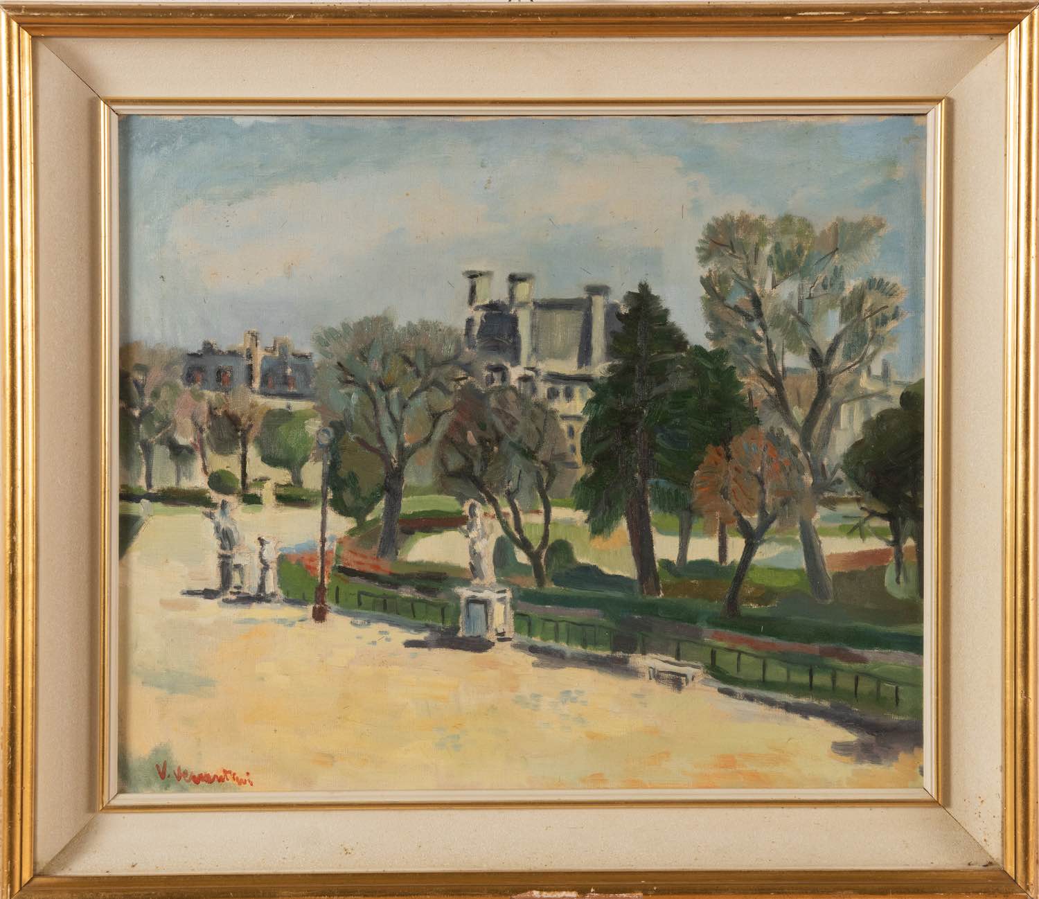 Anonimo del XX secolo, Dipinto raffigurante “Giardino di città”.