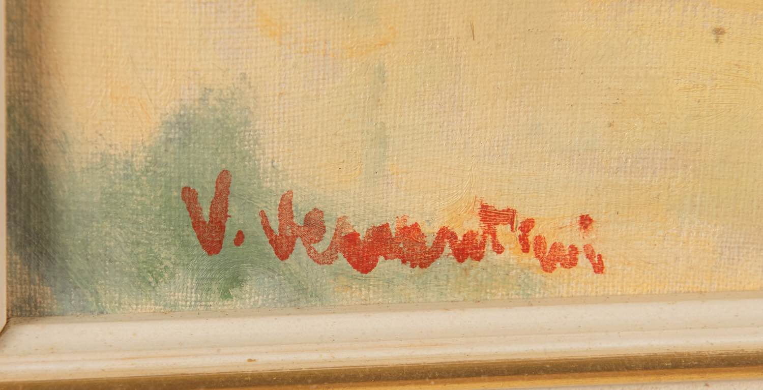 Olio su tela, reca firma non decifrata in basso a sinistra, H cm 46x56
