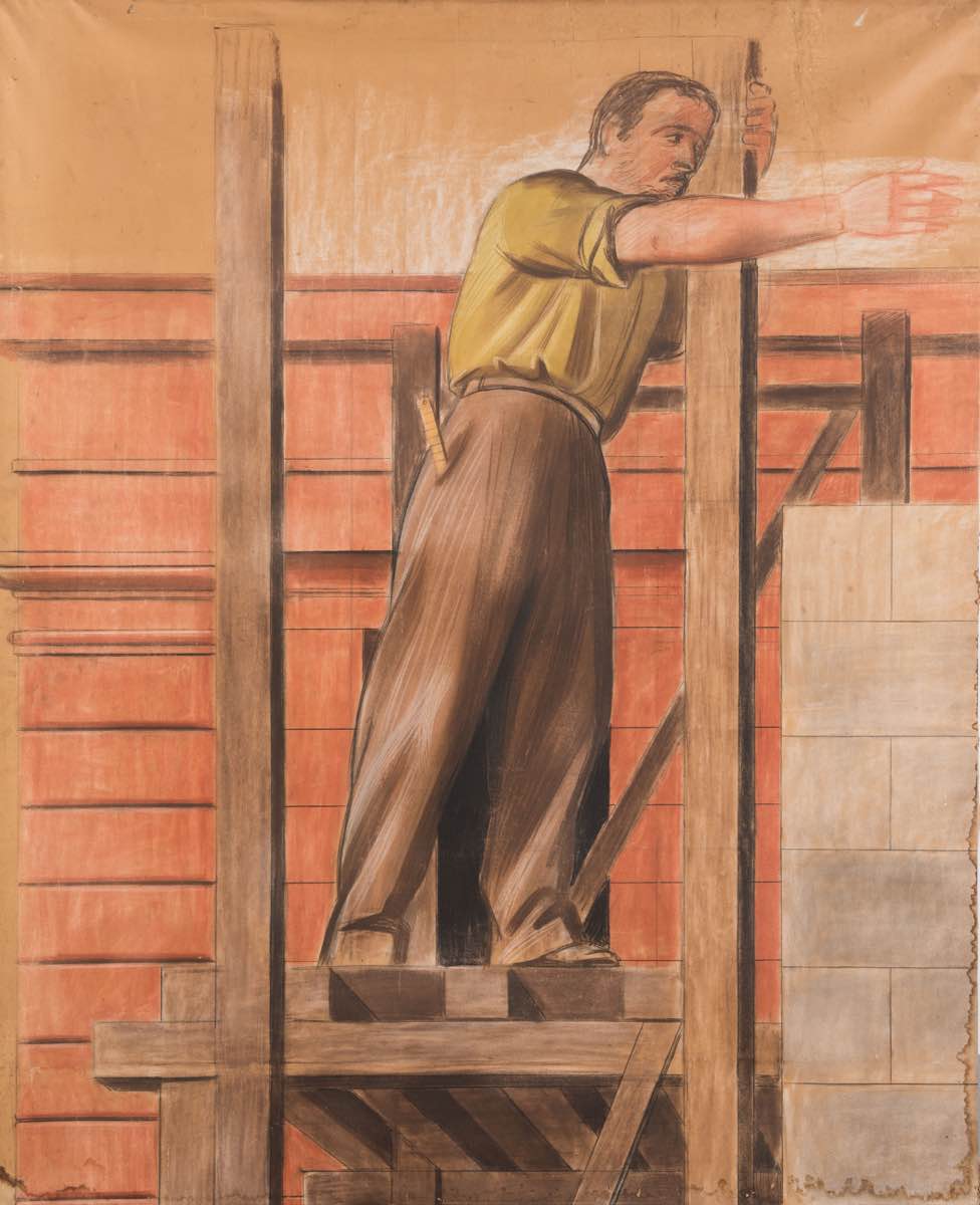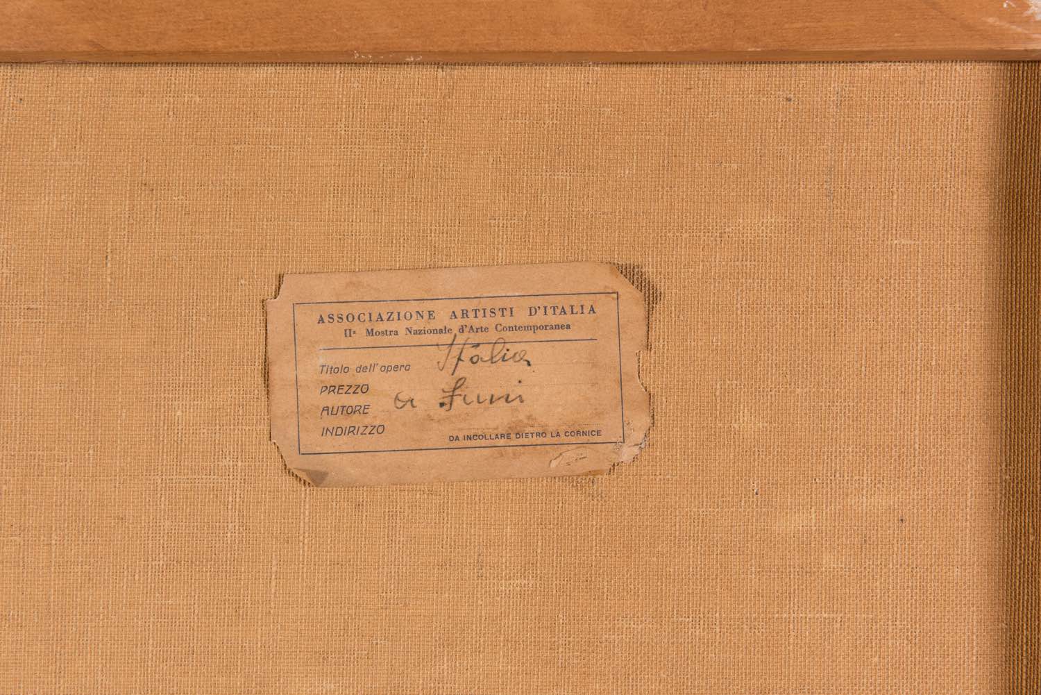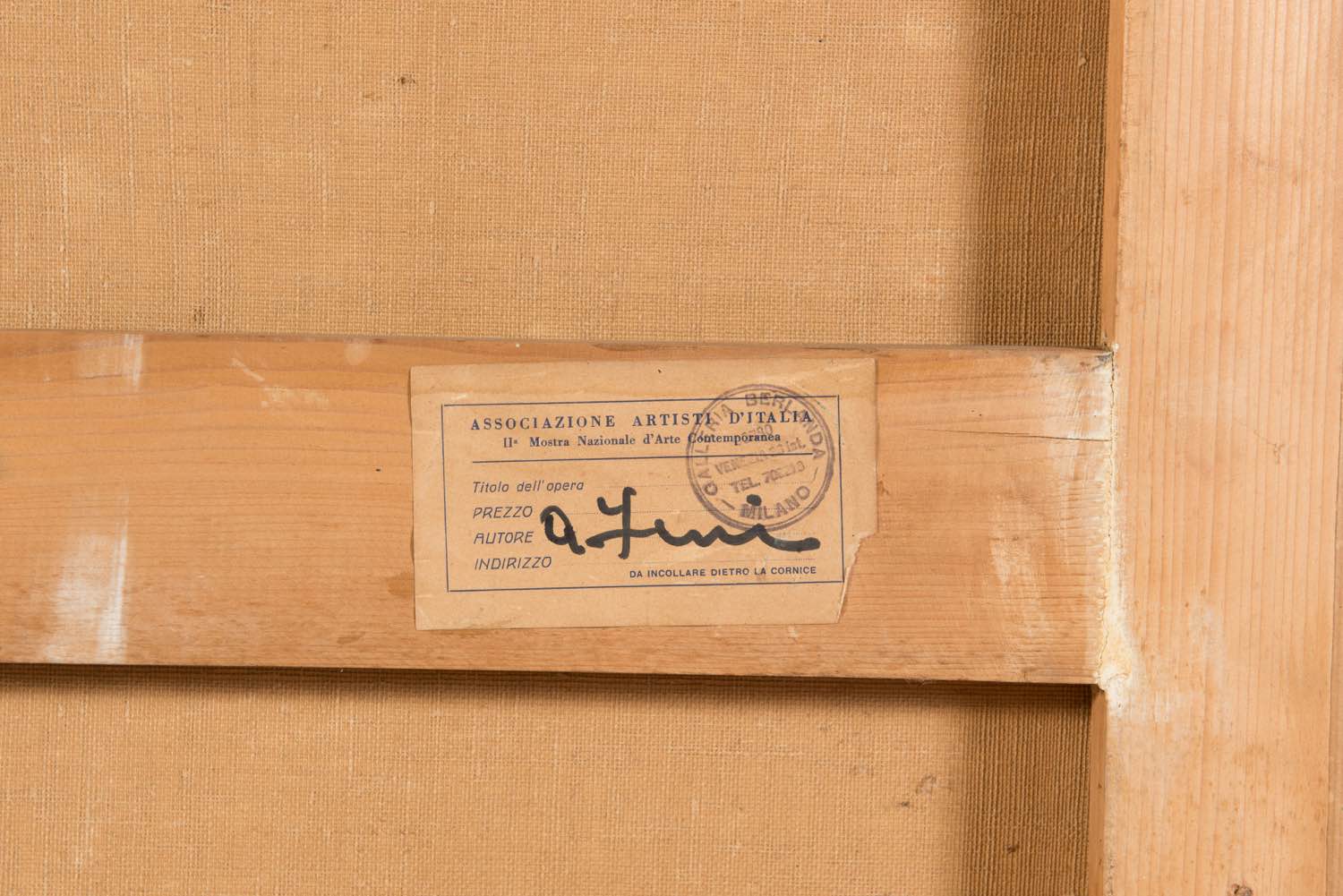 Tecnica mista su carta applicata su tela, H cm 157x128 Al retro reca etichette ‘Associazione Artisti d’Italia - II Mostra Nazionale d’Arte Contemporanea’ e timbro Galleria Berlanda - Milano. Opera accompagnata da certificato di autenticità su fotografia a firma Luigi Colombo. Cartone preparatorio per il mosaico della Fondazione Cariplo, oggi Intesa Sanpaolo di via Verdi a Milano, realizzato da Funi nel 1940 circa e pubblicato sul Catalogo Ragionato dei Cartoni di Funi - 1996 a cura di Nicoletta Colombo, Edizioni Leonardo Arte, Milano, n.104 - pag. 130.