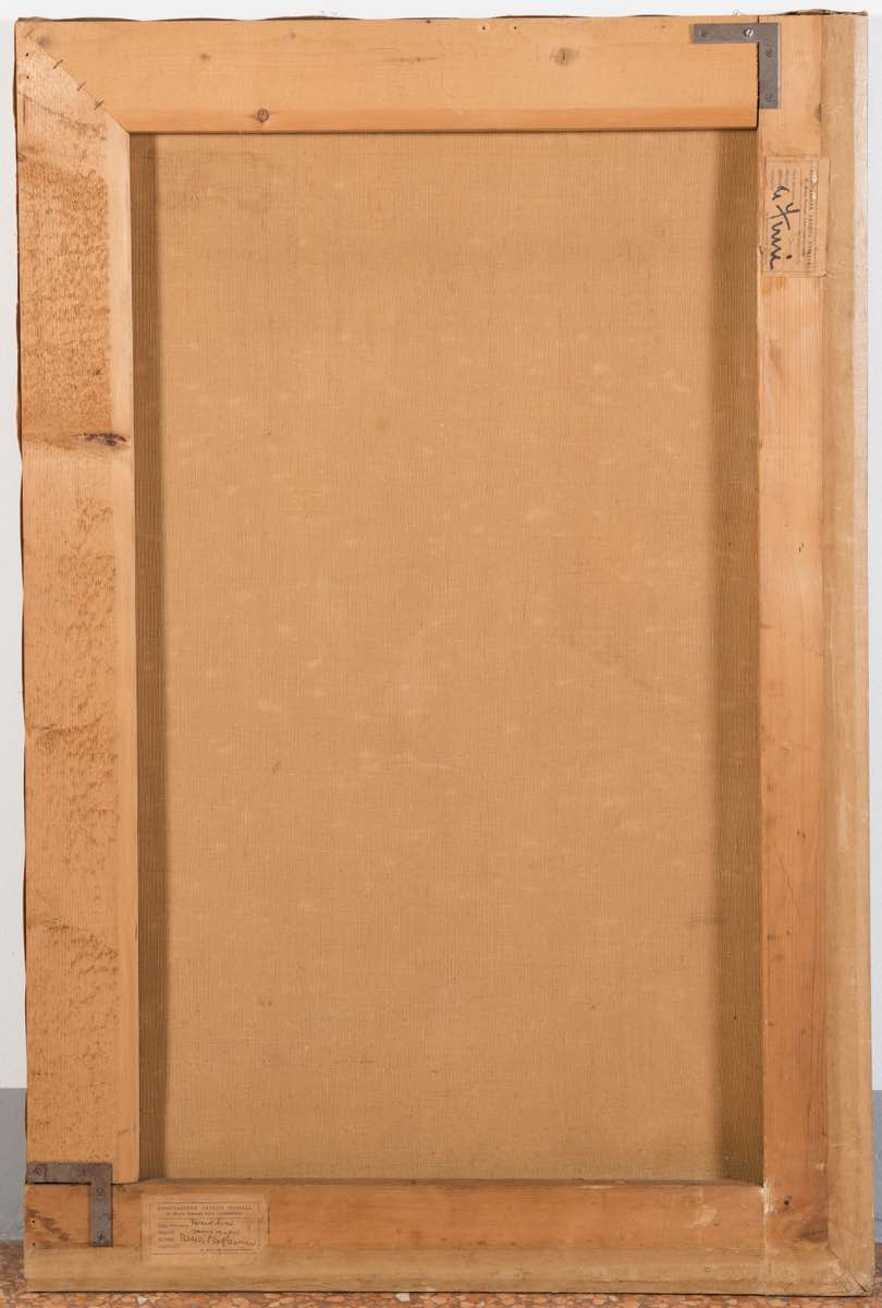 Tecnica mista su carta applicata su tela, H cm 123x81 Al retro reca etichette ‘Associazione Artisti d’Italia - II Mostra Nazionale d’Arte Contemporanea’ e timbro Galleria Berlanda - Milano. Opera accompagnata da certificato di autenticità su fotografia a firma Luigi Colombo. Cartone preparatorio per il mosaico della Fondazione Cariplo, oggi Intesa Sanpaolo di via Verdi a Milano, realizzato da Funi nel 1940 circa e pubblicato sul Catalogo Ragionato dei Cartoni di Funi - 1996 a cura di Nicoletta Colombo, Edizioni Leonardo Arte, Milano, n.103 - pag. 130.