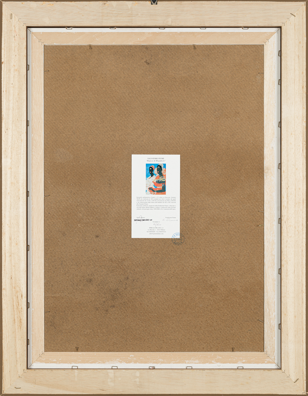 Etichetta della Spirale Milano con timbro a secco della Fondazione Salvatore Fiume al retro