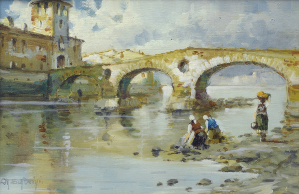 Roberto Scalvini (Brescia, 1950) PONTE Olio su compensato, cm. 25x17 Firma in basso a sinistra.
