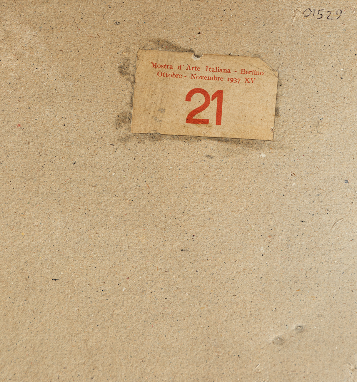 Etichetta della 'Mostra d'Arte Italiana - Berlino. Ottobre-Novembre 1937 XV' al retro