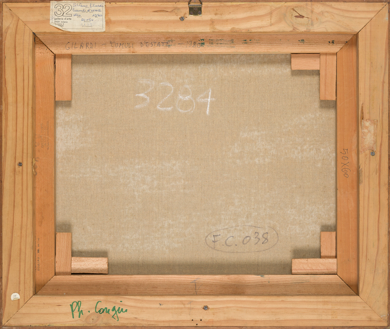 Etichetta e timbri della Galleria d'Arte 32 (MI) al retro