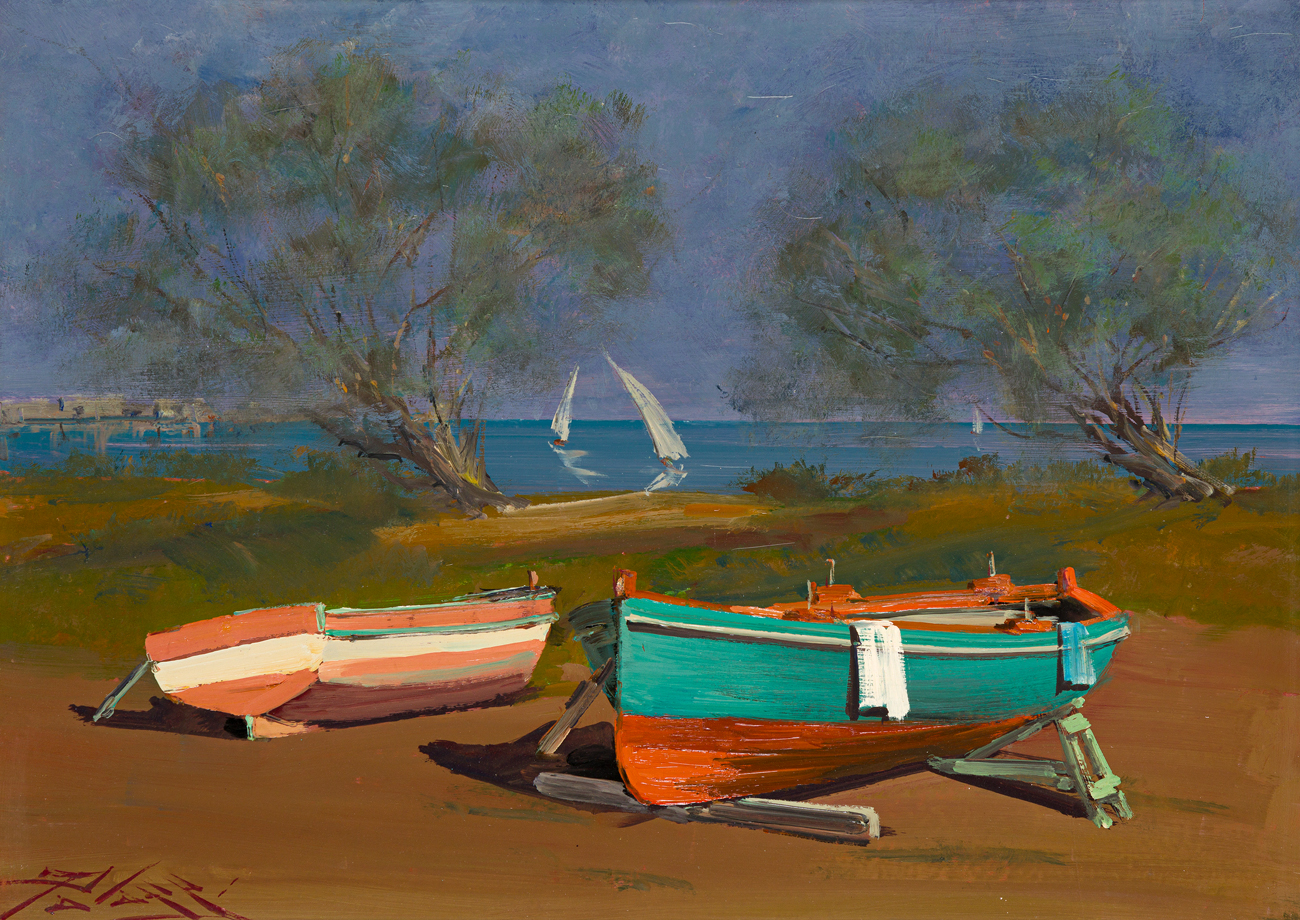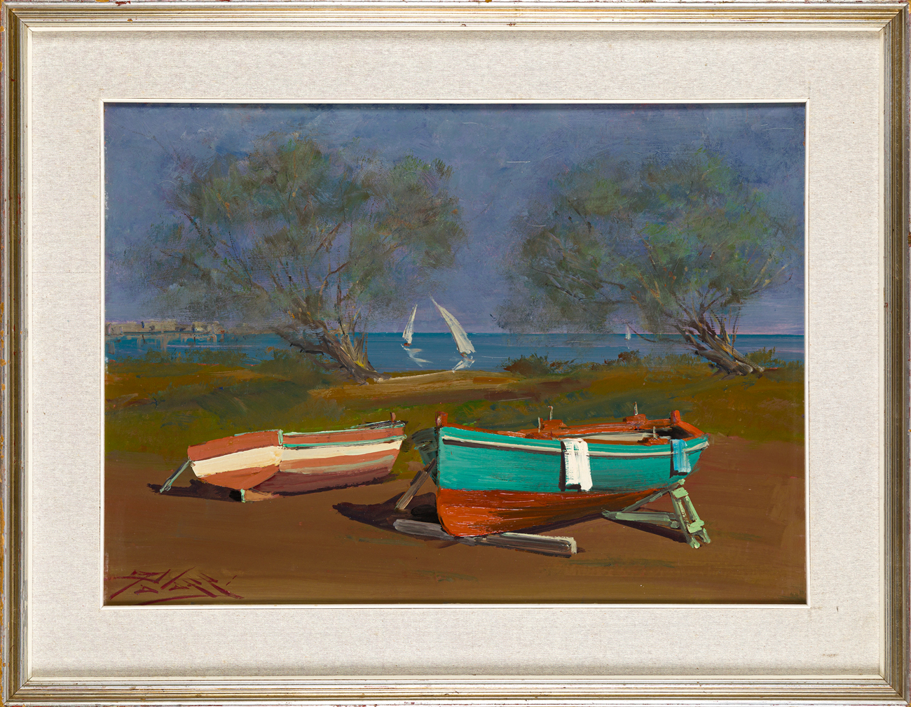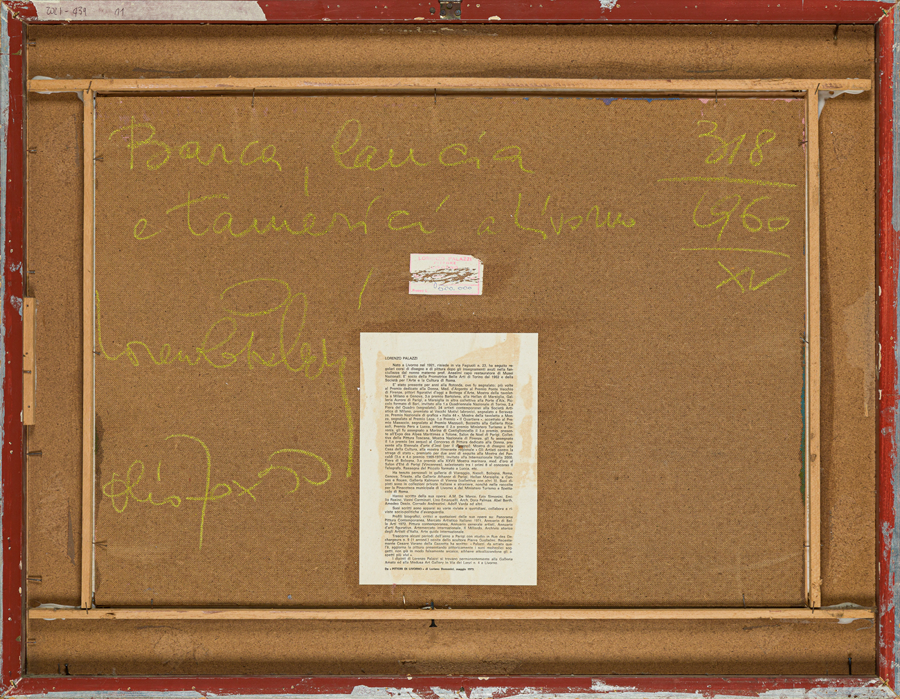LORENZO PALAZZI (1921-1990) - Barca, lancia e tamerici a Livorno, 1960