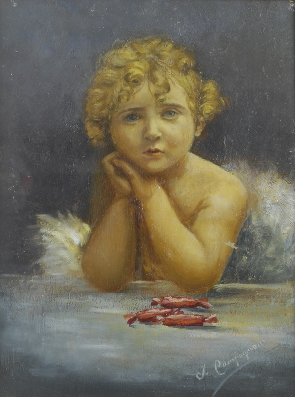 Ilaria Campagnari ANGELINO Olio su cartone, cm. 33x25 Firma in basso a destra.
