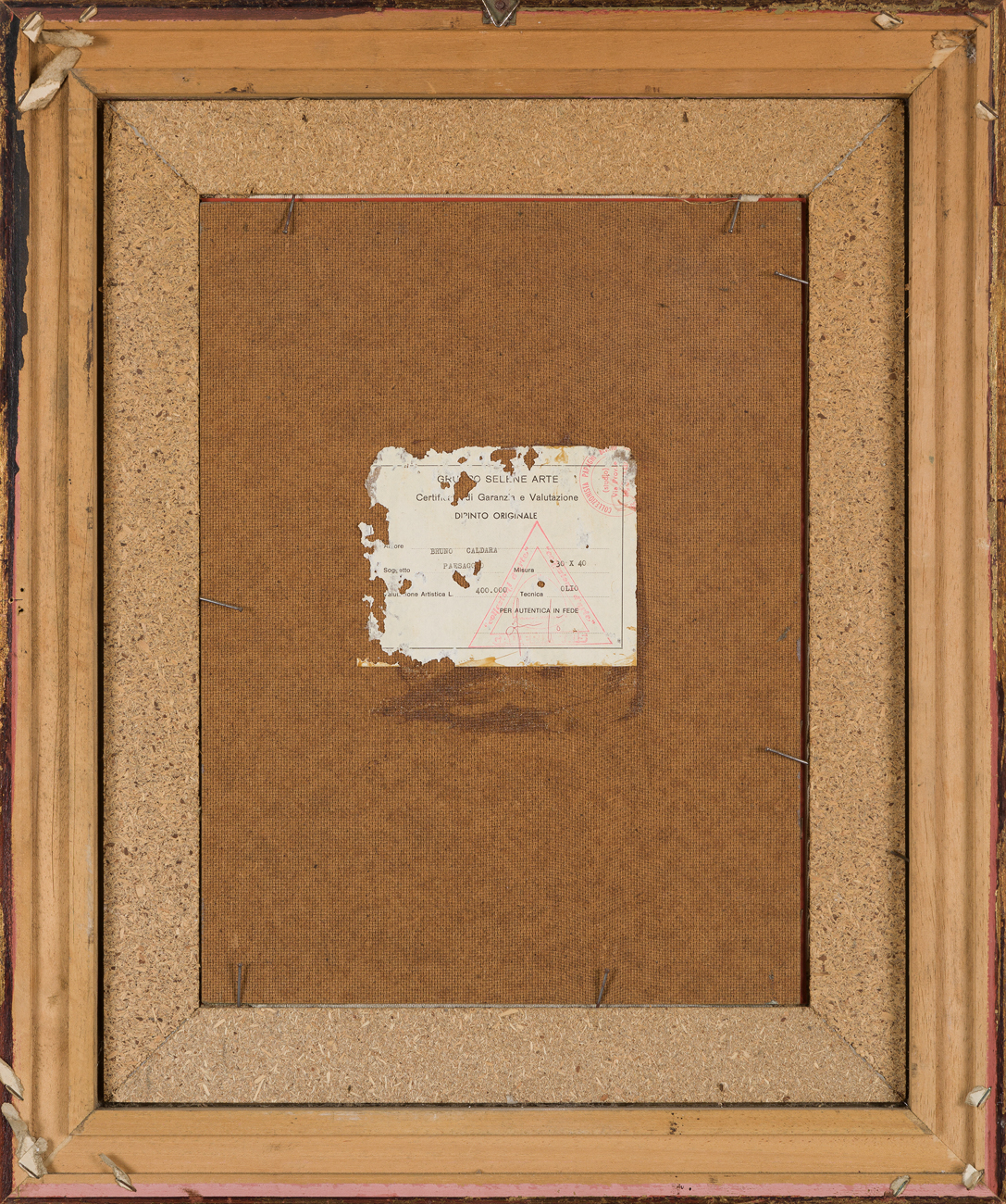 Etichetta del Gruppo Selene Arte e timbri della Collezione Benito Papagni (MI) e della Galleria Tris al retro