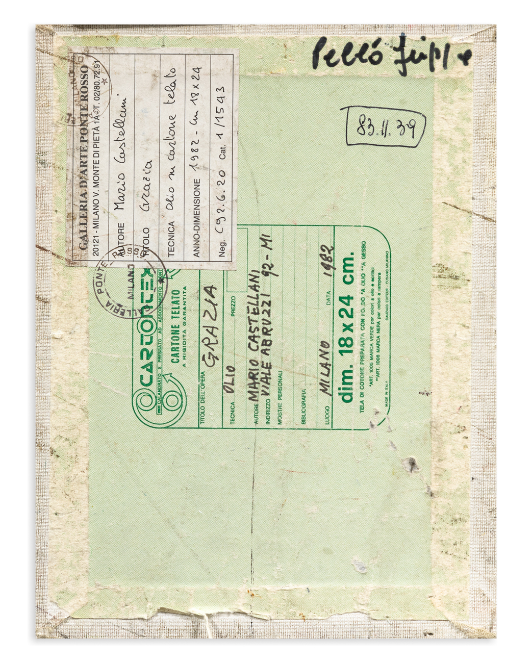 Etichetta e timbri della Galleria d'Arte Ponte Rosso (MI) al retro