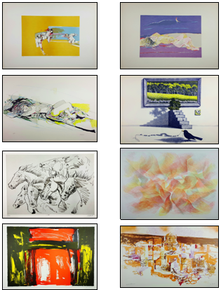 BLOCCO DI 8 GRAFICHE “Senza titolo” litografie a colori cm 50x70. Firmate e numerate , tiratura prova di stampa in basso a sinistra. (Saltarelli, Andreoli, Mariani, Andreali, Saltarelli, Zuppelli, Micheli.