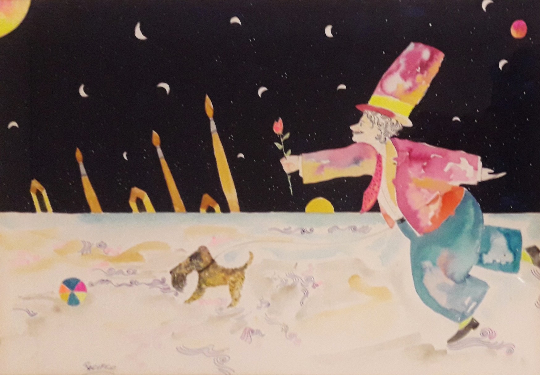 PACIFICO LUIGI Bari 1955 “Pittore" acquerello su cartoncino cm 34x48. Firmato sul fronte in basso a destra. Opera incorniciata.