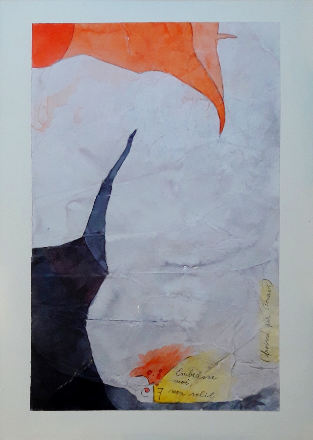 NOVAK VLADISLAV Budapest 1894-1942 “Embrasse moi, mon soleil” tecnica mista su cartoncino cm 42x60 foglio, cm 32x50 disegno. Intitolata sul fronte in basso al centro, dedicata a destra.