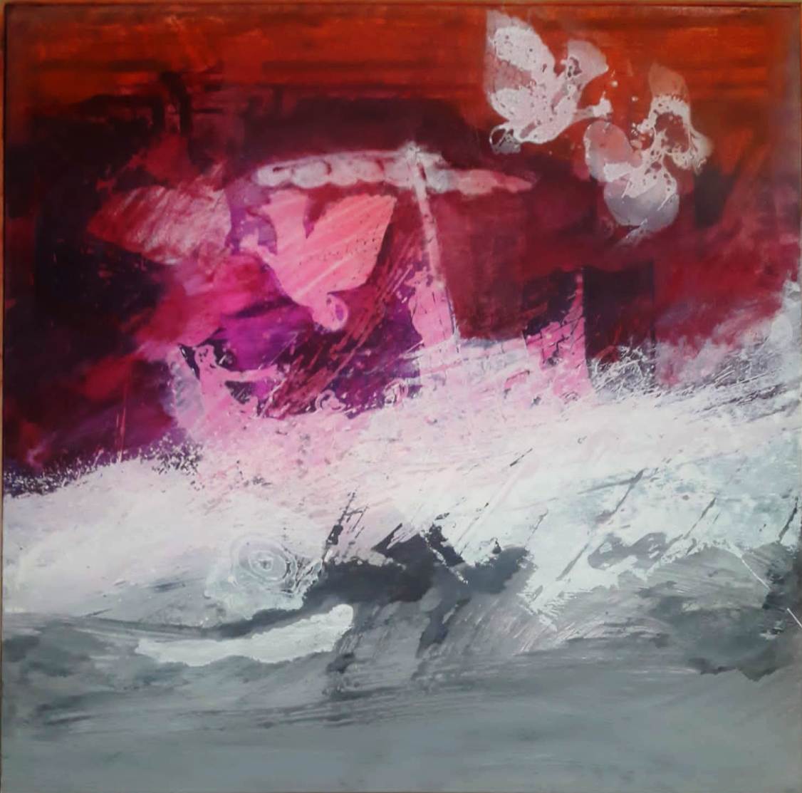 BARATELLA PAOLO Bologna 1935 "Aletheia, Aletheia” tecnica mista su tela cm 100x100. Sul retro intitolato e firmato.