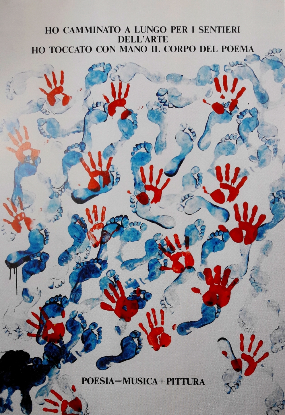 SARENCO (ISAIA MABELLINI) Brescia 1945-2017 “Ho camminato a lungo per sentieri dell’arte” collage di serigrafie e acrilico su tavola cm 200x140 del 1986. Sul retro firmato, datato ed etichetta “Uni media” (pezzo unico). Opera pubblicata a pag.117 del catalogo ragionato” Opere di Sarenco” Volume I a cura di Achille Benito Oliva e pubblicazione a pag.12 del catalogo “Art in Italy n°34”.