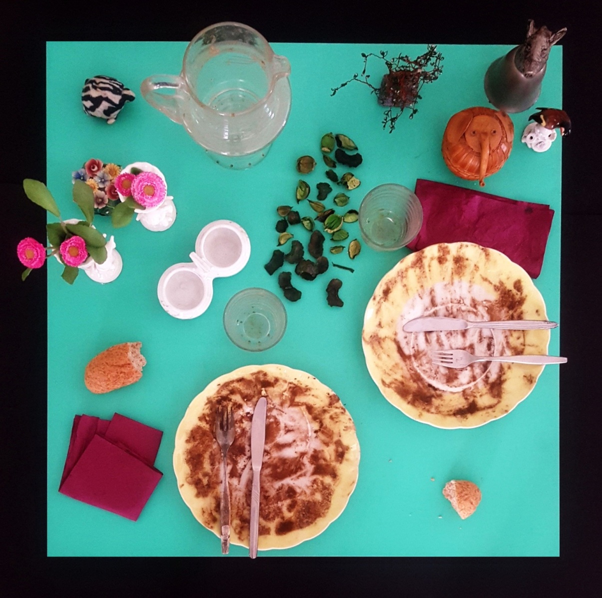 SPOERRI DANIEL Francia 1934-Germania 2015 “Verde primavera” assemblaggio di vari oggetti su tavola in teca di plexiglass cm 71x71x37 del 2014. L'opera fa parte della serie "Tables bistro de Sainte Marthe", performance ed esposizione presso la Fondazione Mudima, Milano, dal 10 gennaio al 9 febbraio 2014. Lartista realizzò appositamente per l'occasione 21 tavole con vari elementi assemblati, utensili e stoviglie di cucina di materiali diversi, raccolti nei mercatini delle pulci di tutta Europa, dei veri e propri spazi-ristorante. Provenienza collezione privata. Archiviazione su foto.