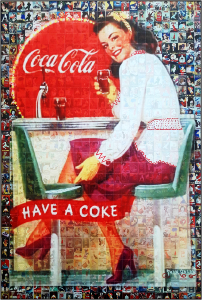 MURGIA MARIA Sassari 1935 ““Senza titolo” interventi pittorici e stampa digitale su due pannelli di kapafix cm 50x74,5. Firmata sul fronte in basso a destra. Sul retro etichetta descrittiva con firma dell’artista ed archiviazione.