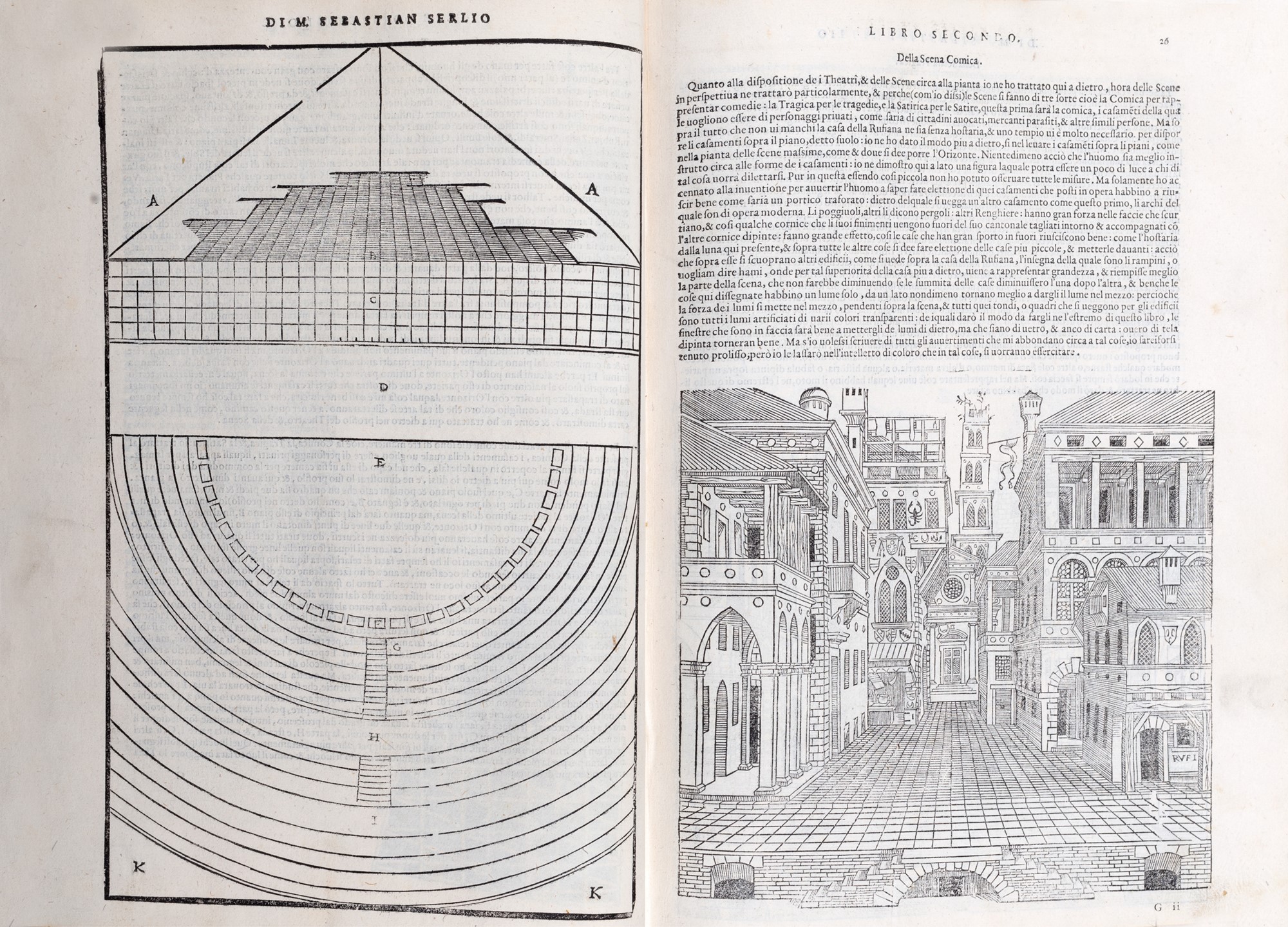 Interessante esemplare che raggruppa i cinque libri in edizioni di diversa data; come è noto, i volumi del Serlio vennero originariamente pubblicati tutti in tempi diversi, soprattutto a Parigi nel 1545, e si trovano in genere esemplari compositi come il presente che corrisponde alla copia della Fowler Architectural Collection della John Hopkins di Baltimore. Il primo e il secondo libro, attribuiti al 1560, sono la seconda edizione italiana; il terzo libro, del 1562, è la quarta italiana; il quarto libro probabilmente pubblicato tra il 1559 e il 1562, è la quinta edizione italiana mentre il quinto libro, del 1559, è la seconda edizione italiana.