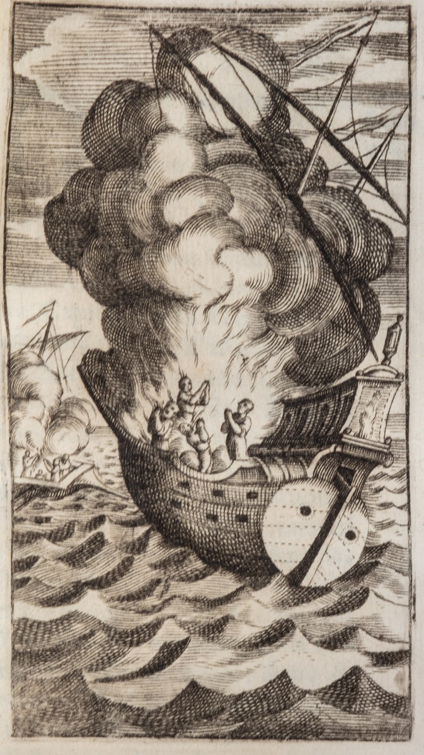 Piazzola, nel Luoco delle vergini, 1686. In 12°. 2 tomi. Con 59 tavole a piena pagina incise in rame, incluse le 2 antiporte, in barbe, rari fascicoli intonsi, sporadiche arrossature, legatura coeva in cartoncino, con titolo entro tassello cartaceo al dorso, lievi difetti.