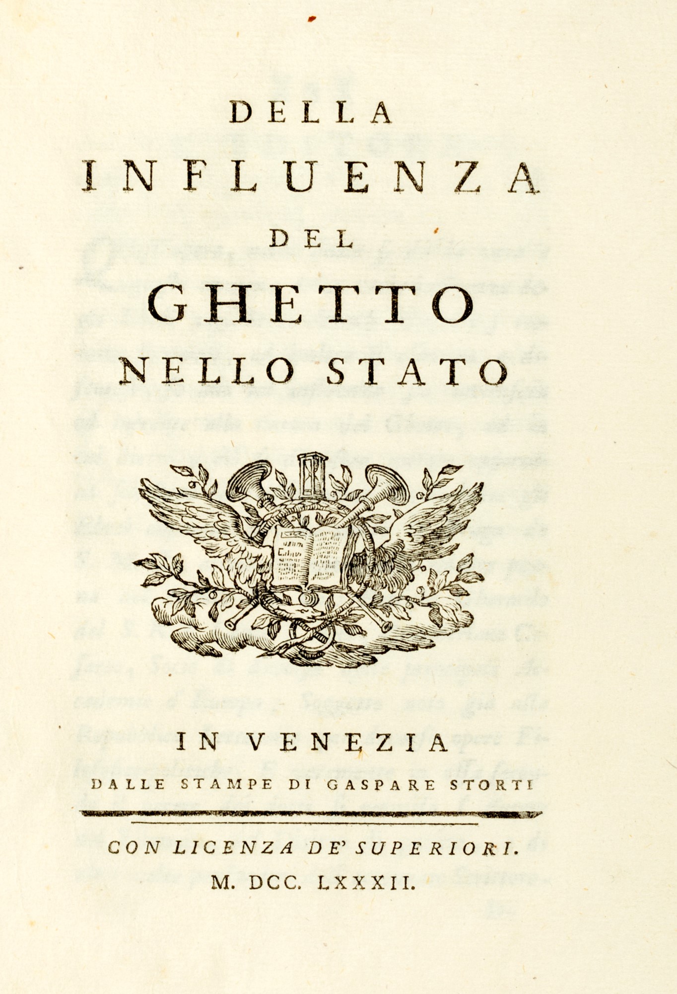 Nello scritto Dell'influenza del Ghetto nello Stato, pubblicato nel 1782 riproponendo la polemica antiebraica con affermazioni ostili agli ebrei, considerava i ghetti ebraici un retaggio negativo e pesante di un passato legato a vincoli religiosi e pregiudizi in quanto nuclei isolati all’interno della società in contrapposizione con le idee illuministiche e liberiste dell’epoca.