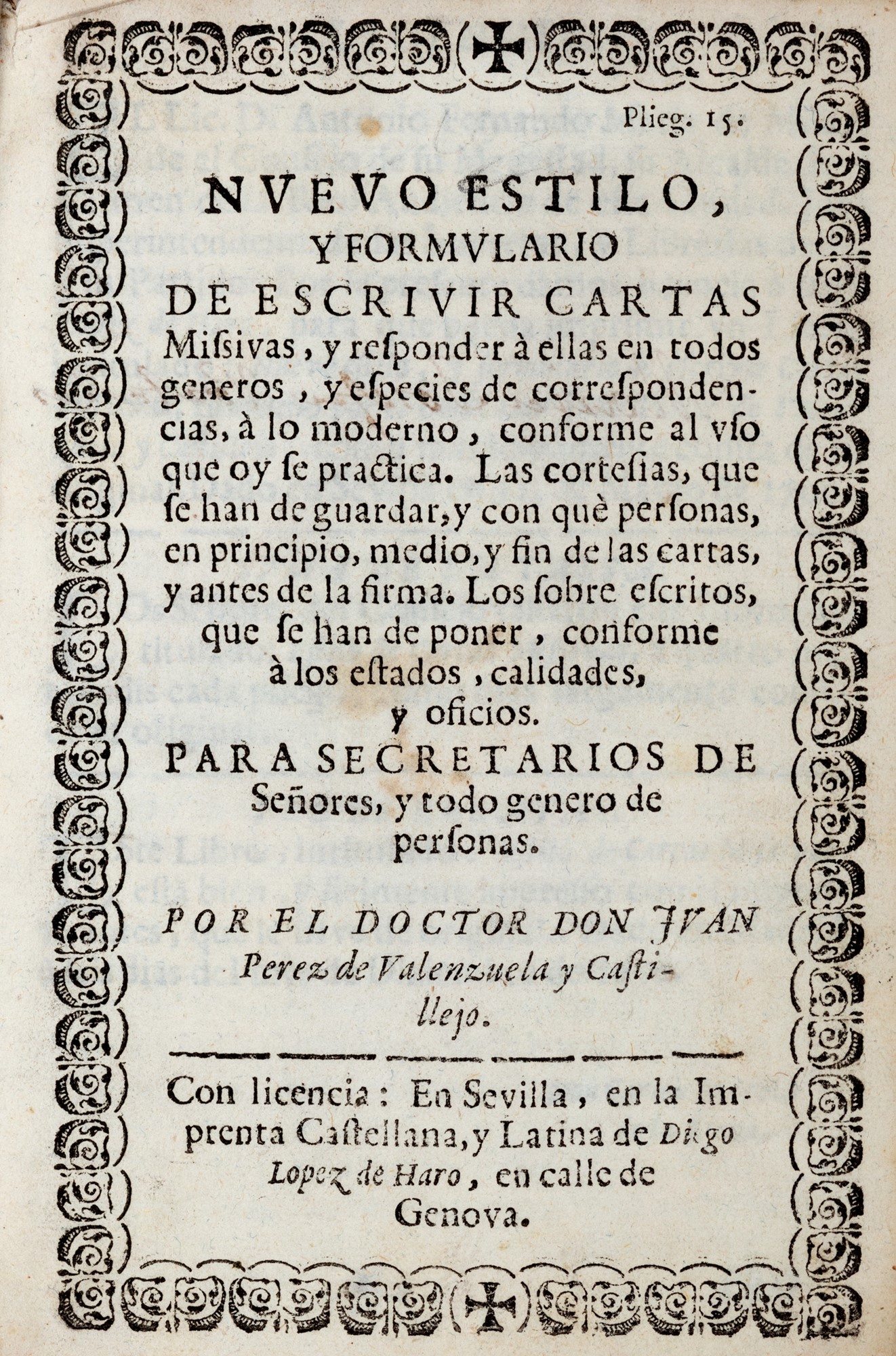 Valenzuela y Catillejo, Juan Pérez de - Nuevo estilo y Formulario de escrivir cartas