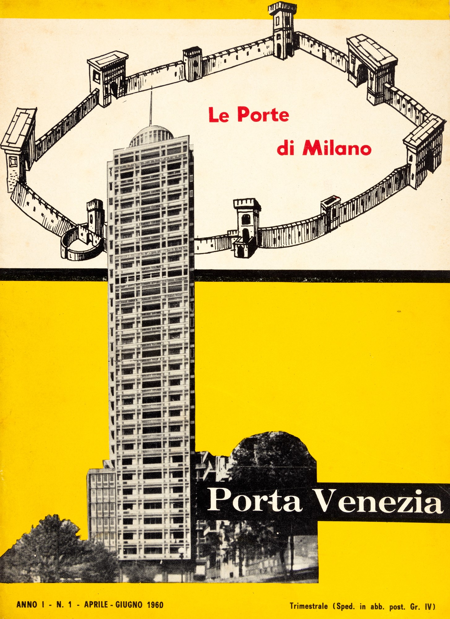 Milano, Libreria Editrice Politecnica Tamburini, [stampa: Stamparia Cesare Tamburini - Milano], 1960 (7 novembre), 21x21,5 cm., brossura, copertina con titolo in nero su fondo verde, alcune illustrazioni in bianco e nero n.t. leggera brunitura, angolo inferiore delle prime pagine con piccola lacuna, brossura editoriale, mancanze al dorso e al piatto anteriore, A cura di Luigi Airaldi, con la collaborazione di Carlo Cavallotti, Raffaella Crespi, Piero De Amicis. Presentazione di Gio Ponti. § Le Porte di Milano - Anno I n. 1. Porta Venezia, Milano, Edipress, [stampa: Intergrafica - Cologno Monzese], aprile/giugno 1960, 26x19 cm., brossura, compresa la copertina, copertina illustrata con un fotomontaggio su fondo giallo e bianco, varie illustrazioni fotografiche in bianco e nero n.t. Testi di Nino Frasca, Giulio Betti, Angelo Matti, Paolo Ranca, Giorgio Melli. Con un articolo su «Metro. Il futuro è finalmente cominciato», pianta, guida ed elenchi di indirizzi utili. § Politecnico di Milano, Istituto di Edilizia, Sperimentazione edilizia. Sistemi costruttivi al Quartiere Triennale di Milano, (Milano), Estratto editoriale dalla rivista EDILIZIA POPOLARE n. 7, [stampa: senza indicazione dello stampatore], 1 novembre 1955, 27x21 cm., brossura, vari disegni, prospetti e illustrazioni fotografiche in bianco e nero n.t. Edizione originale in volume. § La casa appenninica alla mostra dell'abitazione, Faenza, Sindacato architetti, [stampa: Stab. Grafico F. Lega - Faenza], 1933, 18,6x12,5 cm. § Insieme nel lotto Palazzo del Toro, Milano Piazza San Babila