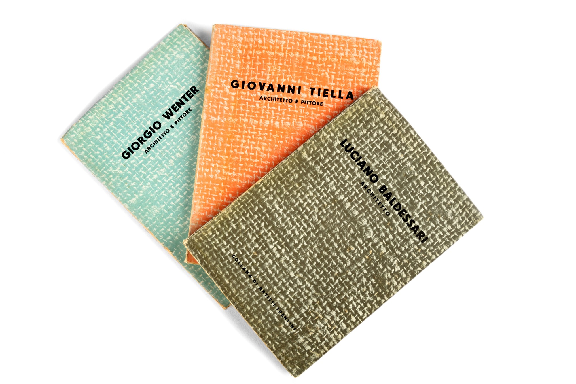 Firenze, Vallecchi, [stampa: Stabilimenti Grafici Vallecchi], 1946, 19,5x12,8 cm., brossura, copertina illustrata con una immagine fotografica a colori. § Baldessari, Luciano; Veronesi, Giulia, Luciano Baldessari architetto, Trento, Collana Artisti Trentini, 1957, 17,2x12 cm., brossura, sovraccopertina, 1 tavola a colori e 98 tavole e illustrazioni b.n. n.t. Testo di Giulia Veronesi. Tiratura di 1.800 esemplari numerati. § Tiella, Giovanni; Piovan, Carlo, Giovanni Tiella architetto e pittore, Trento, Collana Artisti Trentini, 1961, 17,2x12 cm., brossura, sovraccopertina, 51 tavole e 17 illustrazioni b.n. n.t. Dedica autografa del curatore della collana Riccardo Maroni al retrocopertina. Tiratura di 1.000 esemplari numerati. § Wenter Marini, Giorgio, Giorgio Wenter Marini. Architetto e pittore. Appunti autobiografici di Giorgio Wenter Marini e parole di Riccardo Maroni, Trento, Collana Artisti Trentini, 1955, 16,8x11,2 cm., brossura, sovraccopertina, 93 tavole e figure b.n. n.t. Dedica e firme autografe Dell'architetto Giorgio Wenter e del curatore della collana Riccardo Maroni al retrocopertina. Tiratura di 1.500 esemplari numerati. § Insieme nel lotto Eiffel, Gustave Eiffel