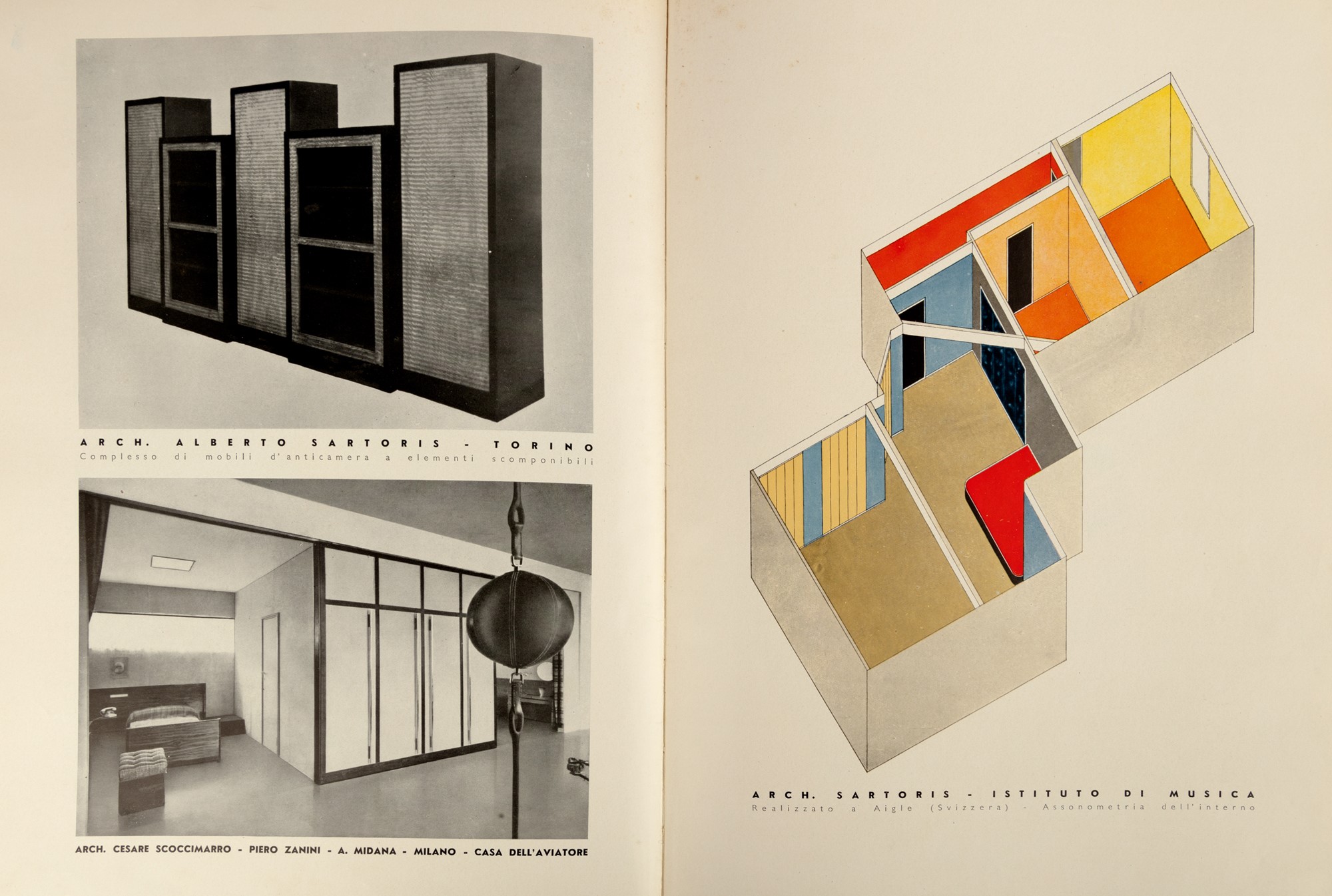 Opere di M. Bega, M. Costa, C. De Munari, L. De Munari, M. Rosso, B. La Padula, A. Libera, G. Levi Montalcini, P. Oriani, C. Scoccimarro, A. Sartoris, H. Belloc, A. Burdin, N. Diulgheroff, M. Labò, A. Lurcat, A. Mari, G. Montero, N. Mosso, A. Muesmann, G. Pagano, V. Pilc, E. Prampolini, O. Rossi, A. Tedesco Rocca, F. Albini, G. Bosio, B. Paul, K. Bertsch, P. Vago, U. Cuzzi, R. Fischer, G. Mercadal, A. Midana, G. Ponti, U. Nordio, G. Dottori, Benedetta, F. Depero, U. Pozzo, E. Thayat, L. Baldessarri e molti altri.