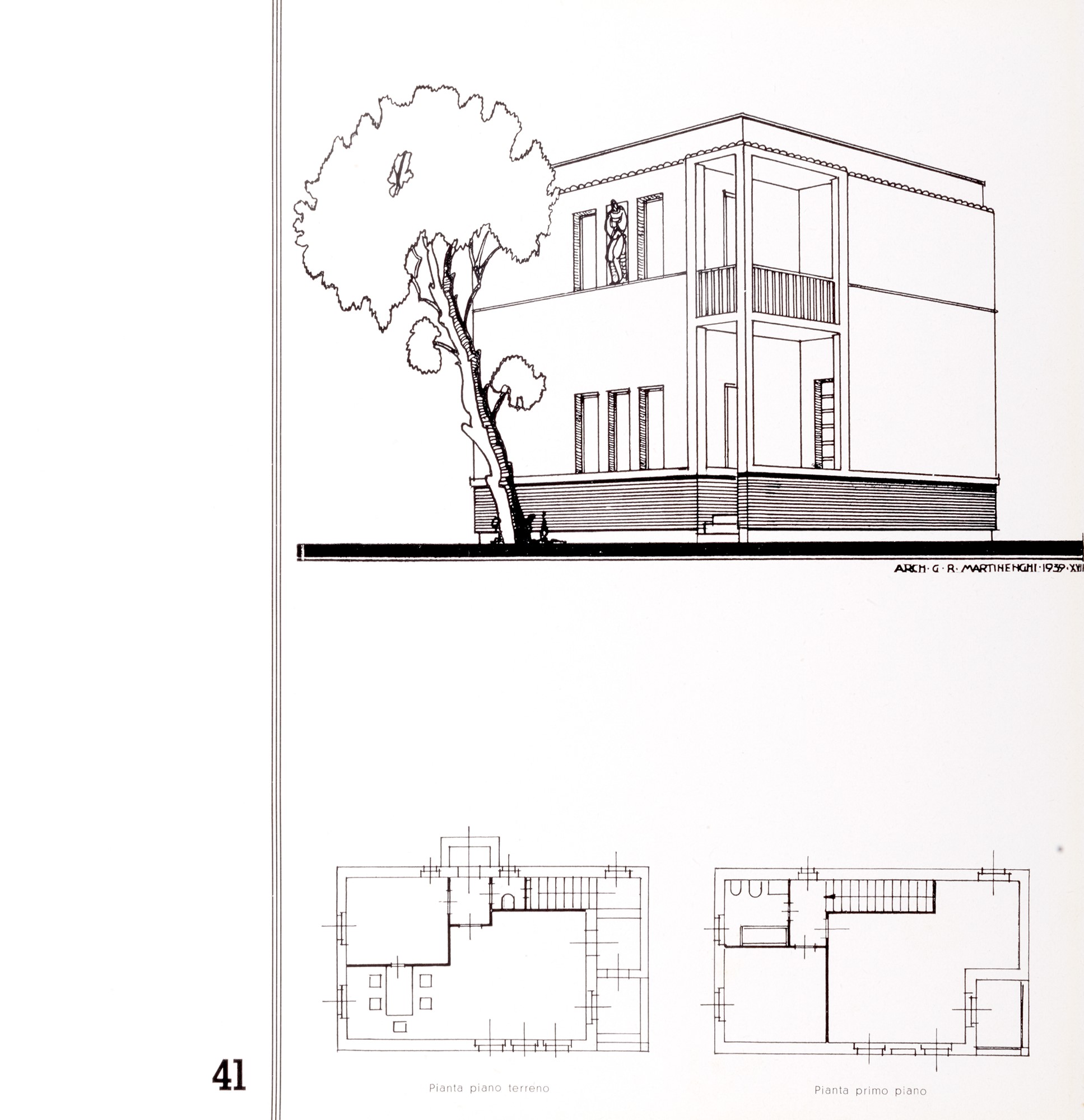 Milano, Editrice Novità, [stampa: Tipografia A. Pizzi e Stabilimento Tipografico G. Colombo - Milano], s.d. [1951], 30x21 cm., legatura editoriale cartonata illustrata con motivo grafico in verde su fondo bianco, dorso in tela con titoli in oro, sovraccopertina, pp. (8) 207 (1) - VIII, copertina e retro illustrati con un'unica immagine costituita da piccole fotografie in bianco e nero sullo sfondo di una grande fitografia sfumata in verde. Volume interamente illustrato con immagini fotografiche in nero e a colori. In appendice un sommario degli articoli in inglese, tedesco e francese. A cura di "A.P.". Testi di Curzio Malaparte (da «La Pelle»), Salvator Gotta («I pionieri di Portofino»); Maria Damerini, A.M. Banchieri, Adele Berrone. § Ravegnani Morosini, Mario, La casa individuale in Italia, Milano, Görlich Editore, [stampa: Stab. Poligrafico G. Colombi - Milano], 1957, 30x23,2 cm., legatura editoriale in tela verde, sovraccopertina in plastica trasparente, pp. 249 (1), sovraccopertina illustrata con disegno architettonico al tratto dell'autore, ca. 500 tavole e illustrazioni in nero e a colori n.t. con progetti e immagini fotografiche di edifici e interni. § Donini, Cesare, Risanamento centro cittadino di Mantova. Mostra arch. Donini nel Palazzo della Regione a Monatova 11 Novembre 1942-XXI (in Case d'Oggi Rivista Mensile n. 5 Maggio 1943), Milano, Editrice "La Casa", 1943 (maggio), 28,9x22,7 cm., brossura, pp. (10/16) 63-(1) complessive, numero speciale con un lungo articolo dedicato alla sistemazione del centro cittadino di Mantova progettato dall'architetto Cesare Donini, con 1 tavola su cartoncino ripiegata fuori testo stampata fronte/retro e 8 illustrazioni in bianco e nero nel testo. § Insieme nel lotto Martinenghi, Giuseppe, 50 ville, Milano, GRM, 1930.