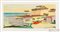 Roma, 1955 (ca. 1955), 17x38,5 cm., tempera a colori su carta applicata su cartoncino. Veduta di una villa sul mare con timbro dello studio di Paladini al margine bianco in basso a destra.