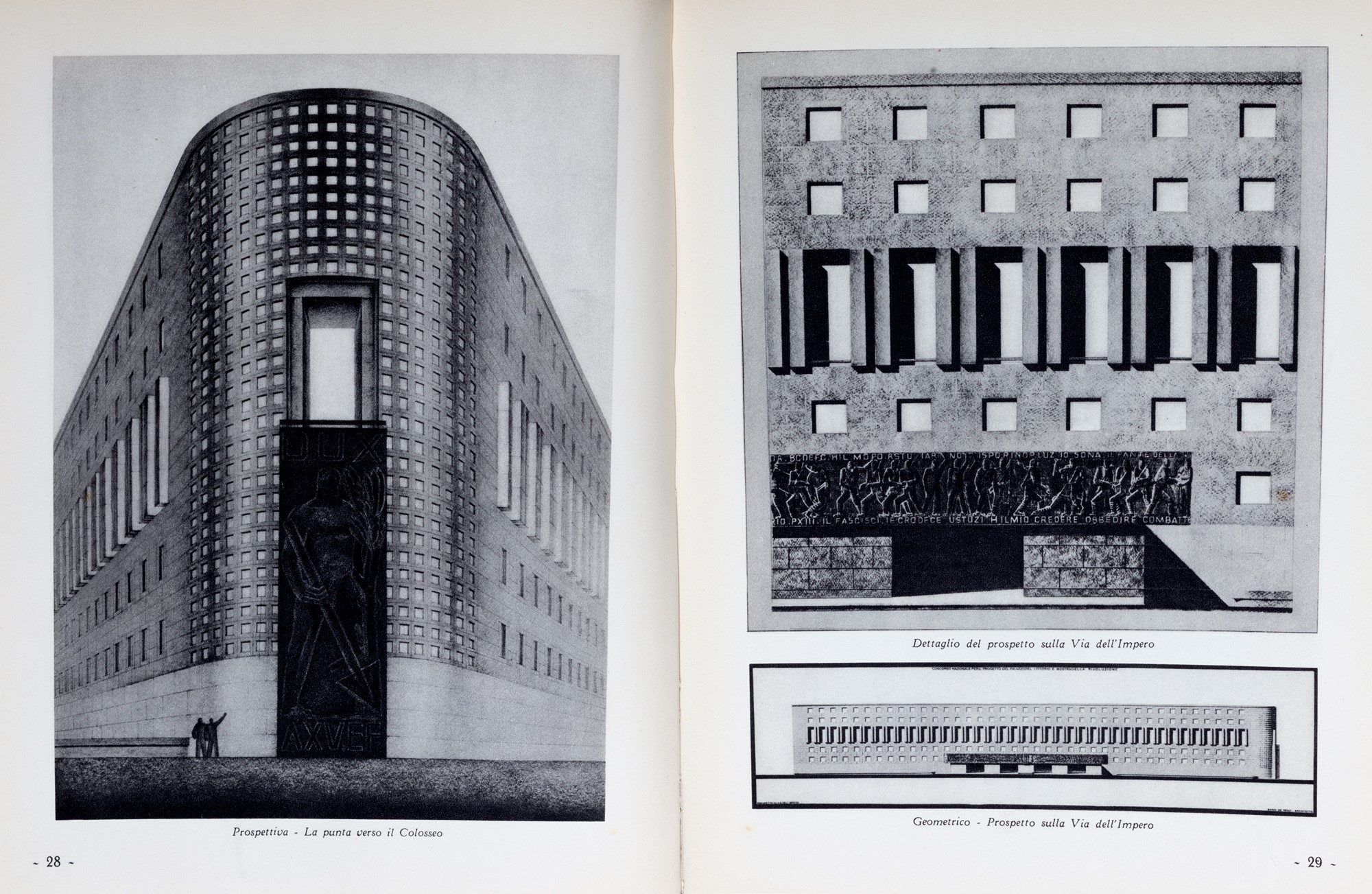 Milano-Roma, S. A. Arti Grafiche Bertarelli, 1936, 29,2x23 cm., legatura editoriale in tela con lievi segni d'usura, pp. XXI-(3)-395-(3), 514 tavole e illustrazioni con progetti di Enrico Del Debbio, Arnaldo Foschini, Mario De Renzi, Oriolo Frezzotti, Giuseppe Terragni, Pietro Lingeri, Adalberto Libera, Luigi Moretti, Giuseppe Palanti, Gaetano Rapisardi, Ernesto Bruno La Padula, Mario Ridolfi, Attilio Rossi, Giuseppe Samonà, Giuseppe Vaccaro, Arrigo Tedesco Rocca, Mario Bacciocchi, Gian Luigi Banfi, Lodovico Belgioioso, Enrico Peressutti, Ernesto Nathan Rogers, Luigi Figini, Gino Pollini, Adolfo Coppedè, Luigi Cosenza, Giovanni Crescini, Gino Levi Montalcini, Emilio Pifferi, Saverio Dioguardi, Fortunato Jerace, Francesco Leoni, Angelo Di Castro, Pietro Lombardi, Costantino Vetriani, Italo Mancini, Virgilio Marchi, Nicola Mosso, Umberto Nordio, Agnoldomenico Pica, Gio Ponti, Ulisse Stacchini e molti altri. Edizione originale. [Bibliografia: Anni Trenta 1982: pag. 625].
